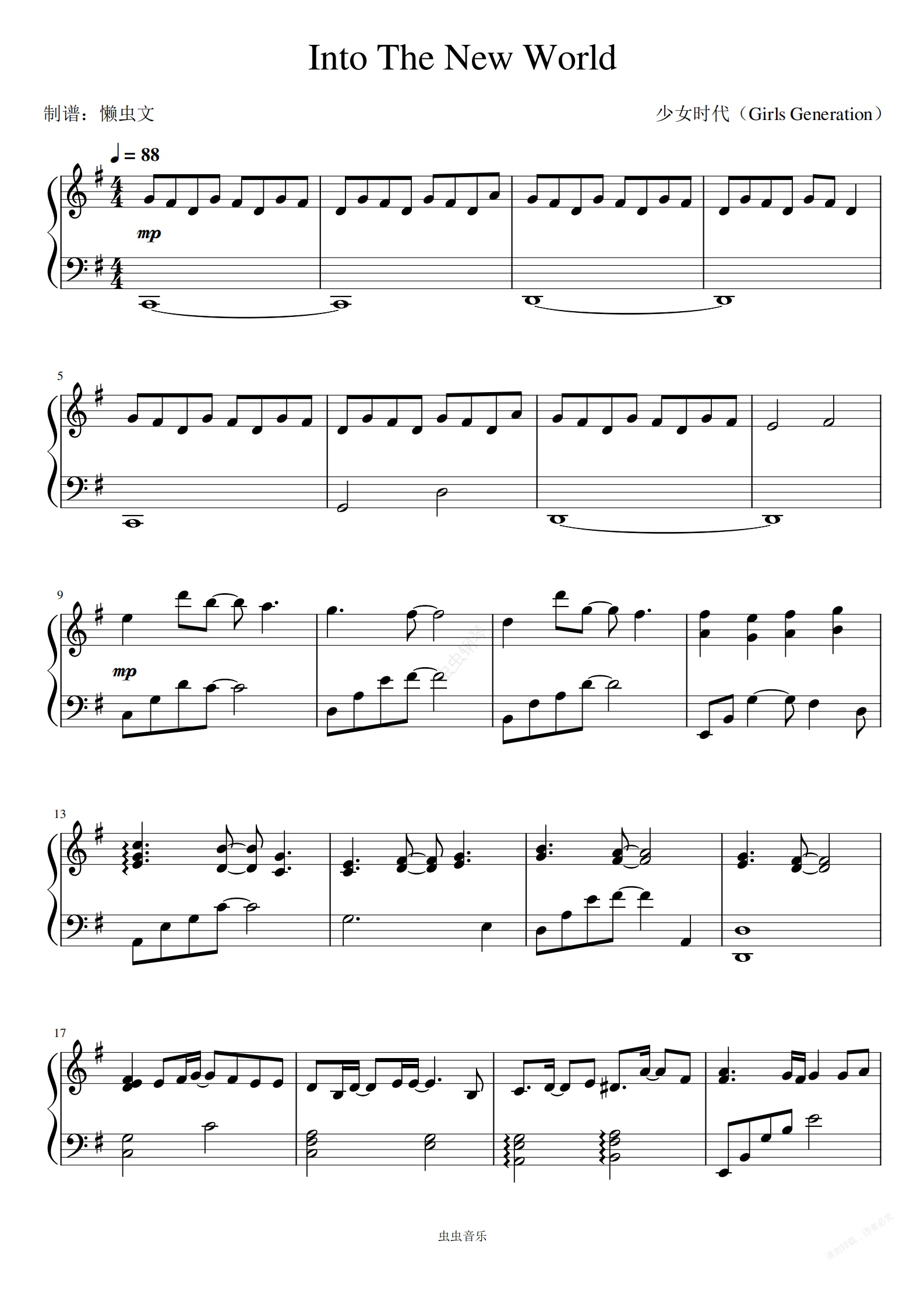 钢琴谱:《Into The New World》-少女时代(Girls Generation)