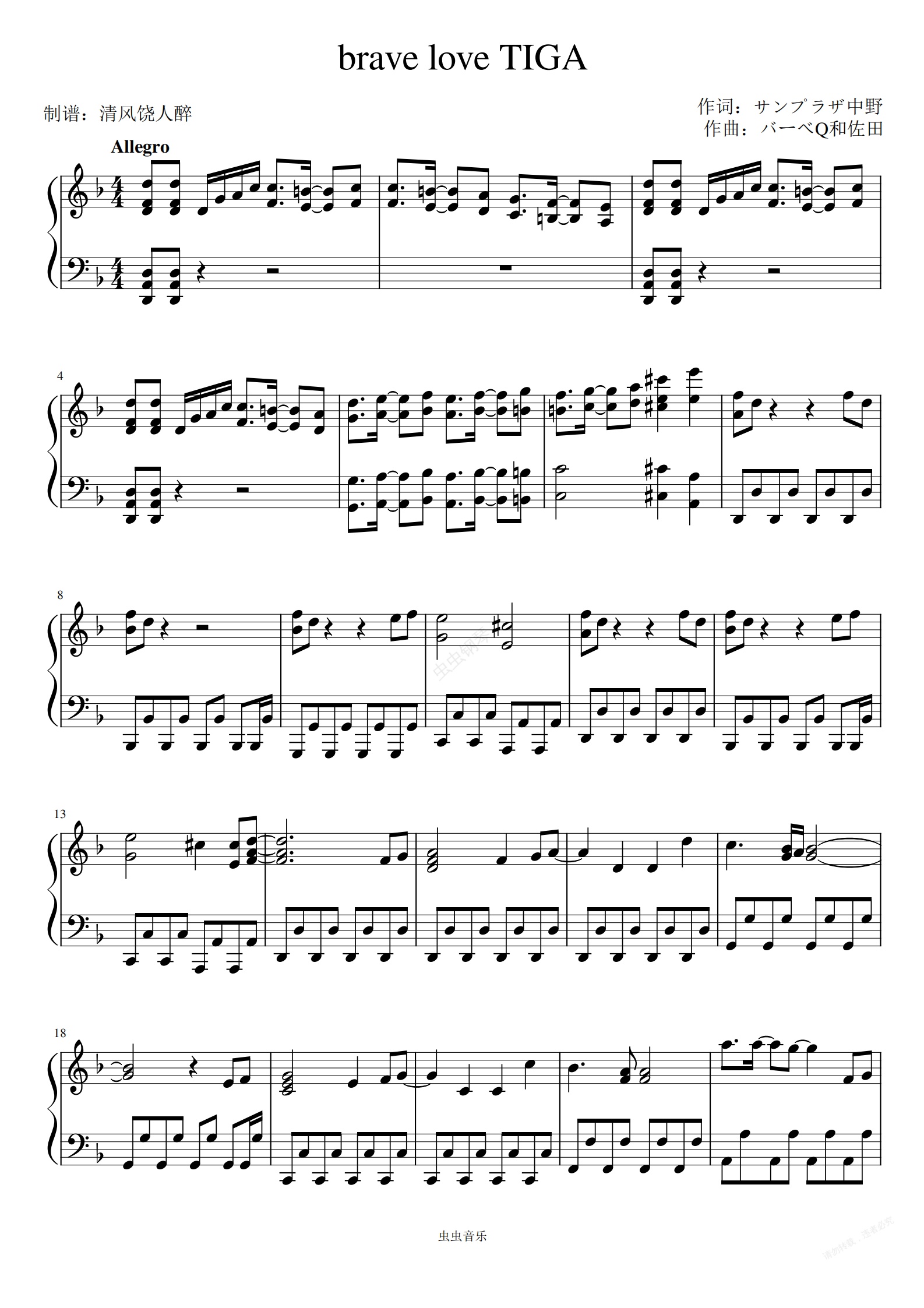 钢琴谱:迪迦奥特曼日版片尾曲brave love TIGA