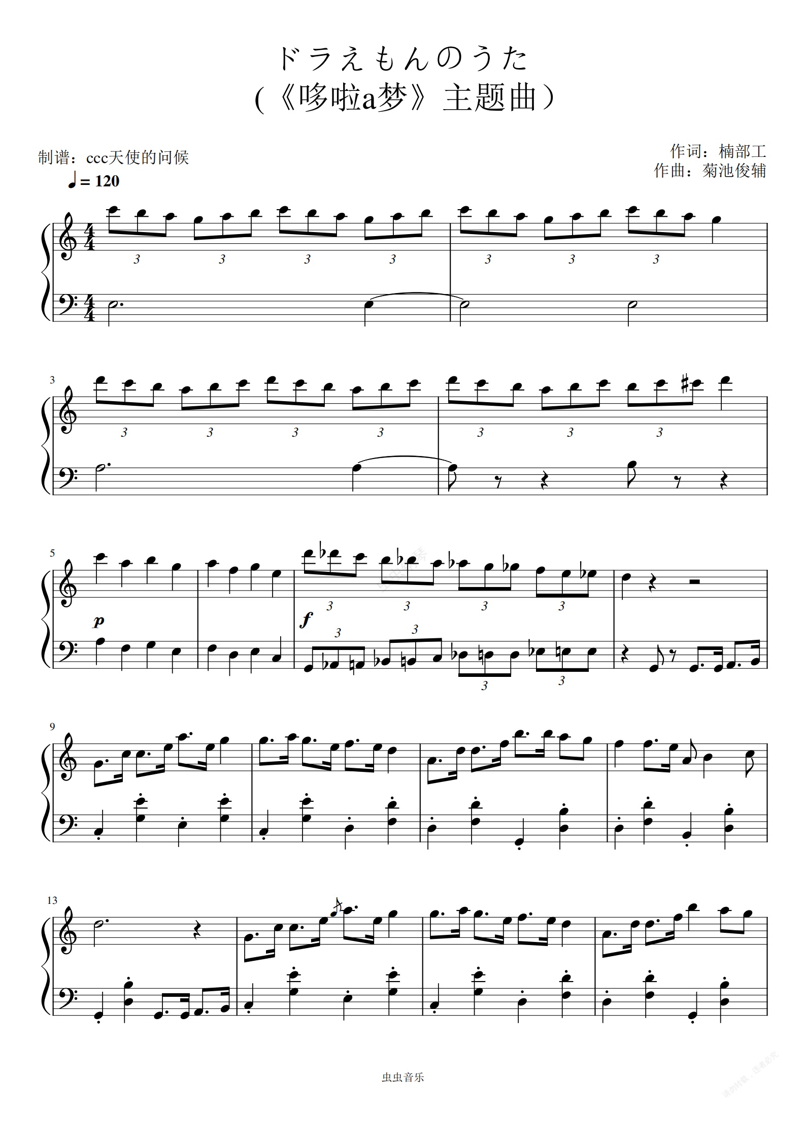 钢琴谱:ドラえもんのうた  (《哆啦a梦》主题曲)
