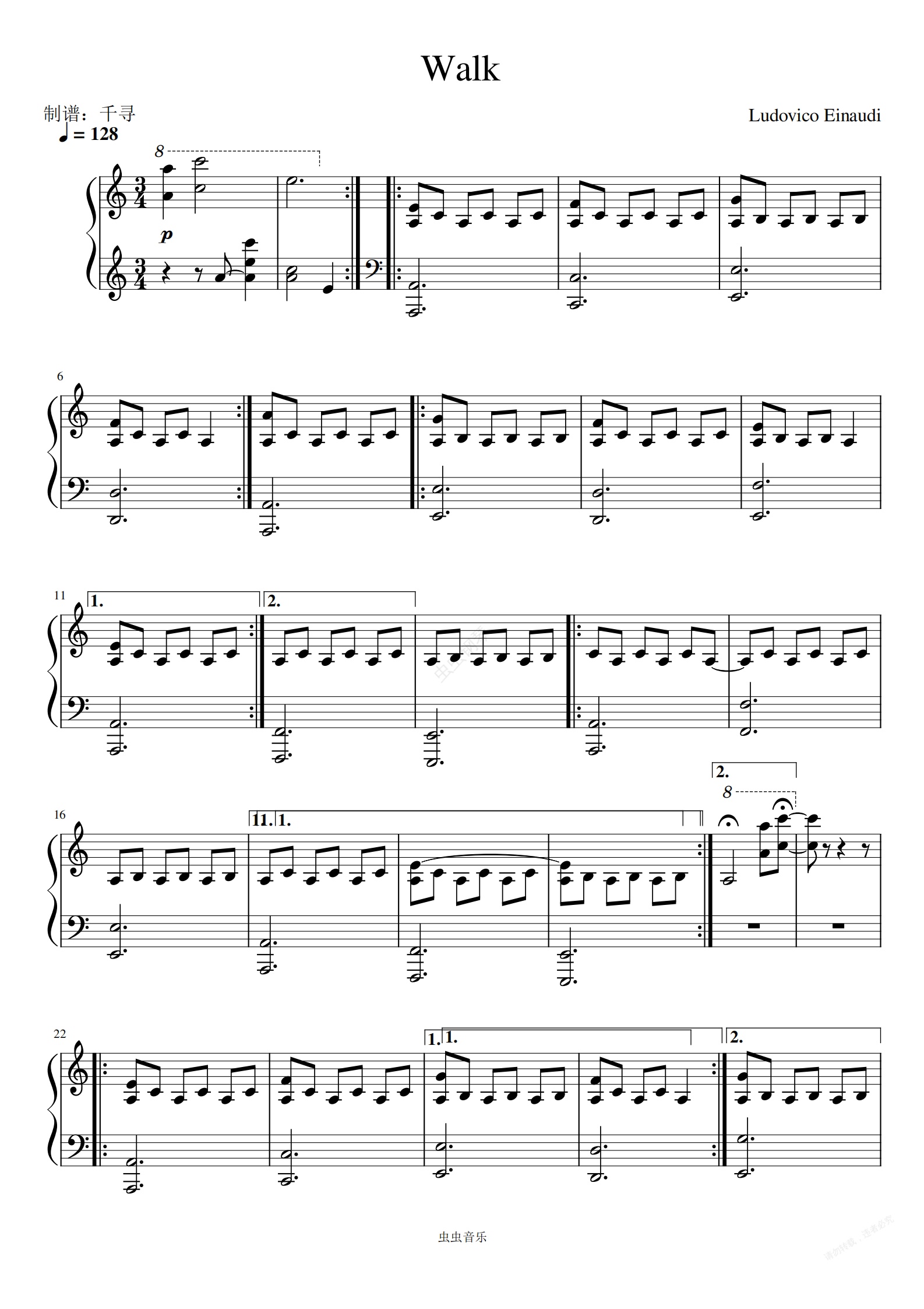 钢琴谱:《Walk 》-Ludovico Einaudi