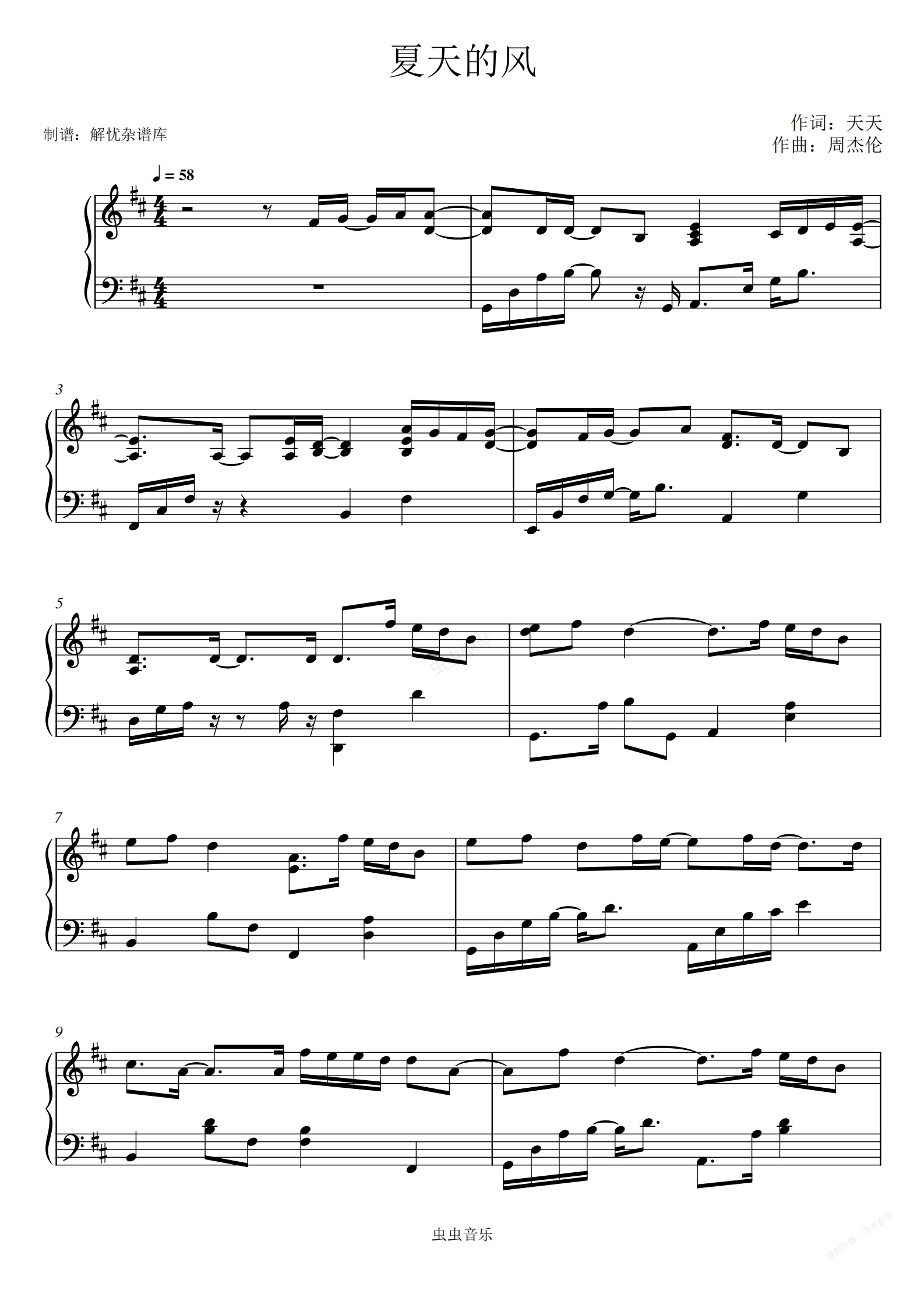 钢琴谱:夏天的风