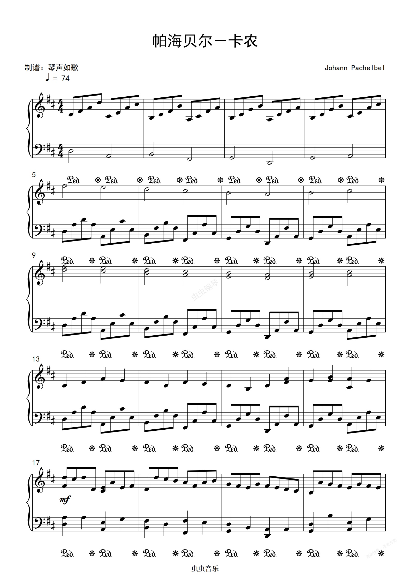 钢琴谱:Canon-卡农 原版钢琴