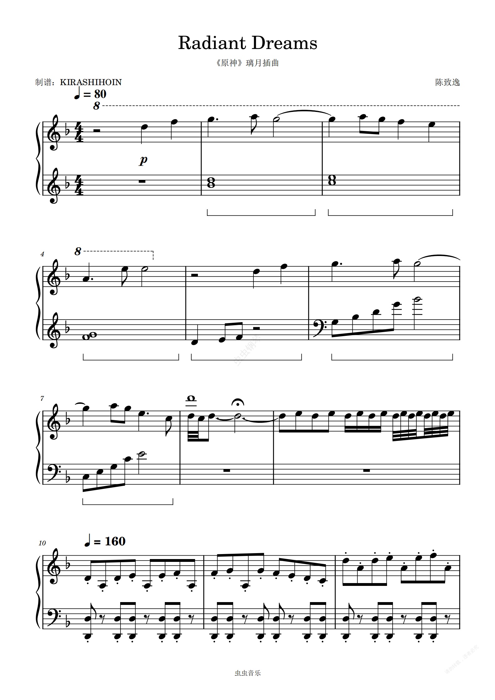钢琴谱:Radiant Dreams/麟跃幽岩(《原神》璃月插曲)- 陈致逸