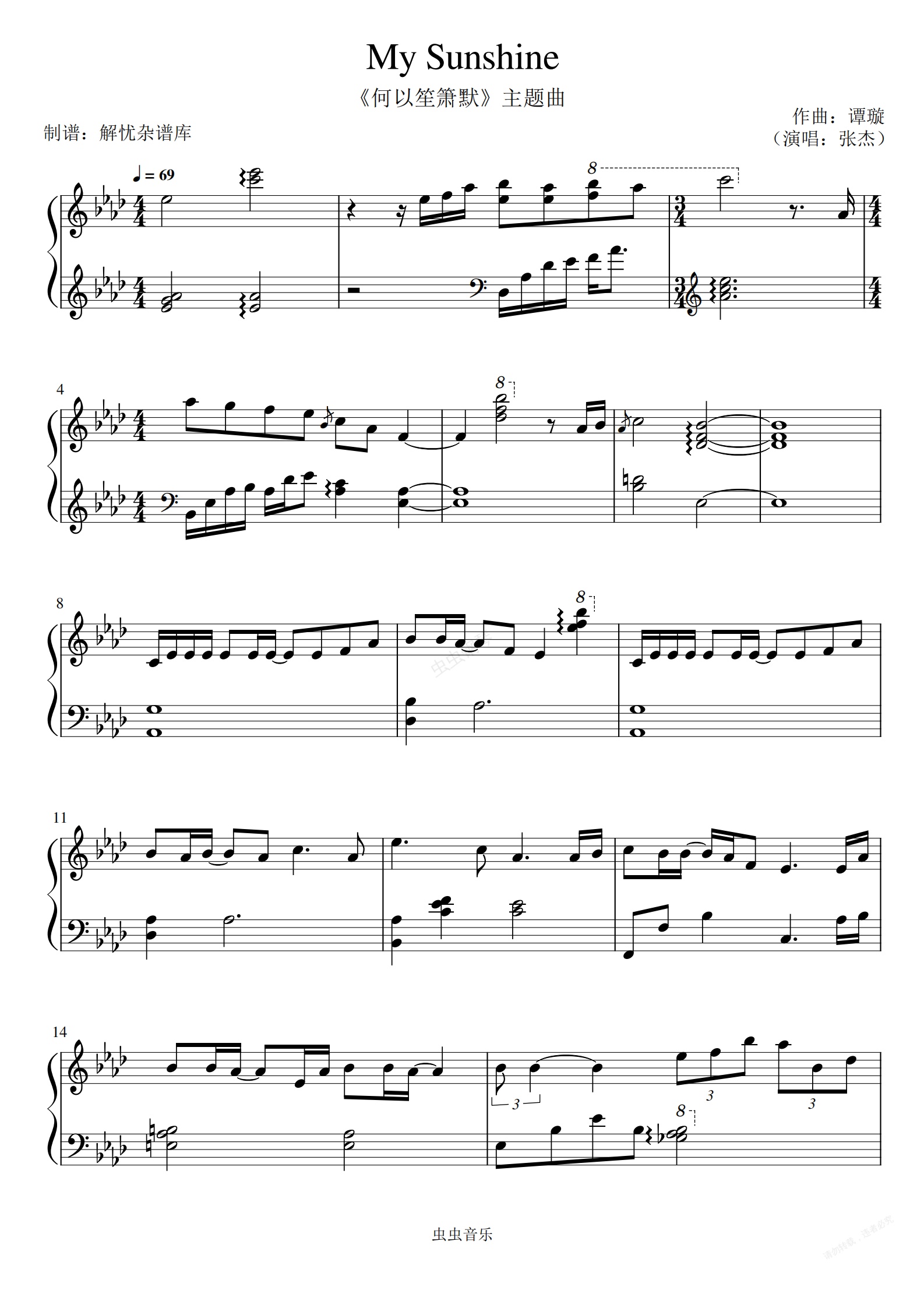 钢琴谱:My Sunshine《何以笙箫默》主题曲