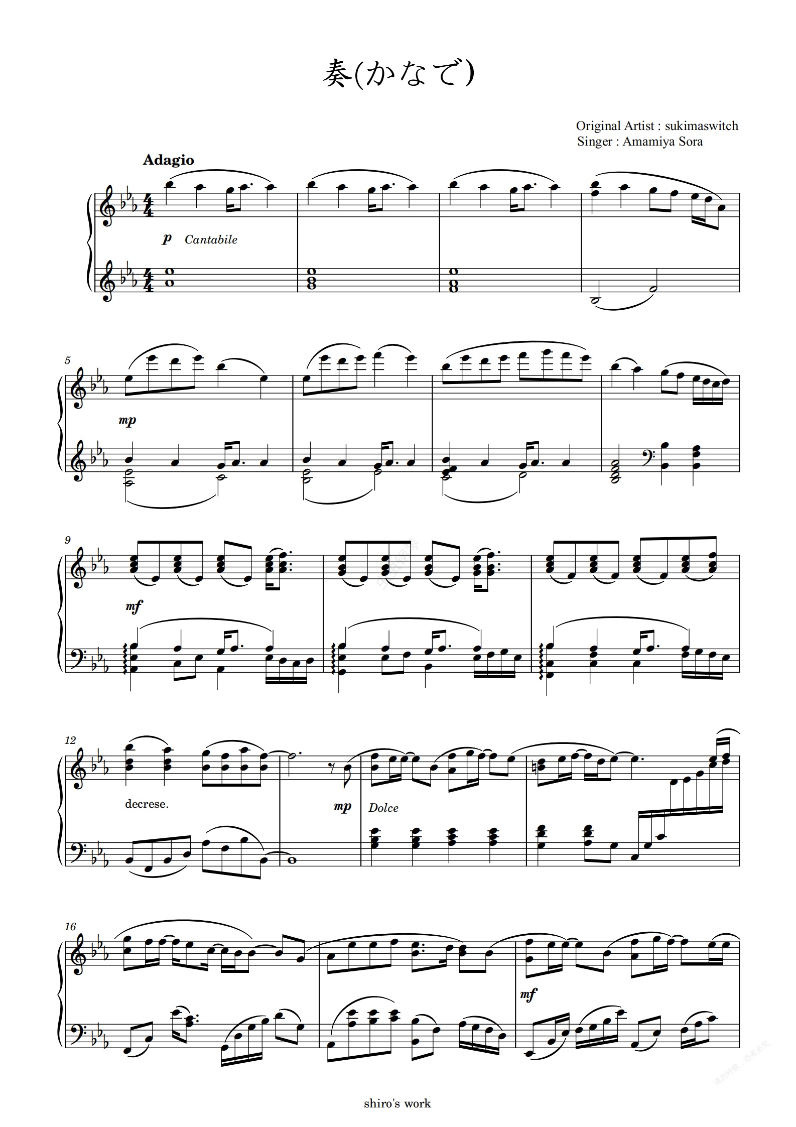 这首曲子确实是很好听,而且传唱了很久,一周的朋友和擅长捉弄的高木同学都拿来当过ED。很久之前曾经编配过一个版本,那时候啥也不懂,现在的眼光看来实在是编的惨不忍睹。。。近日翻到了之后抽空重新编配了一下,还是选了雨宫天的版本(高桥李依那版也很好听,只是我先入为主了2333),也加入了一些新的技术,改进了一些和声织体,也重新制作了一份试听,也算是为自己这几年的学习交上一份作业吧。。