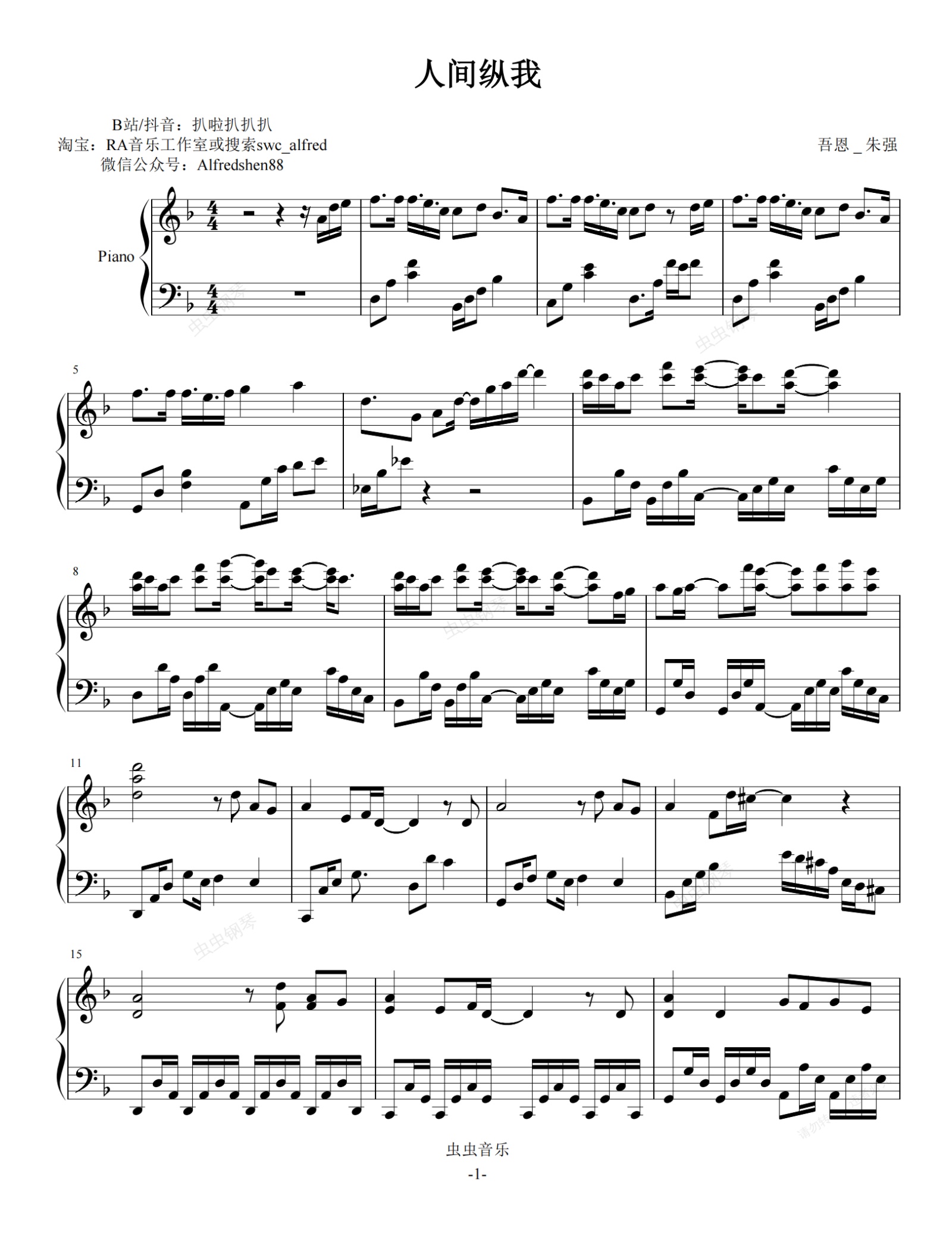 钢琴谱:人间纵我 演奏谱 还原版
