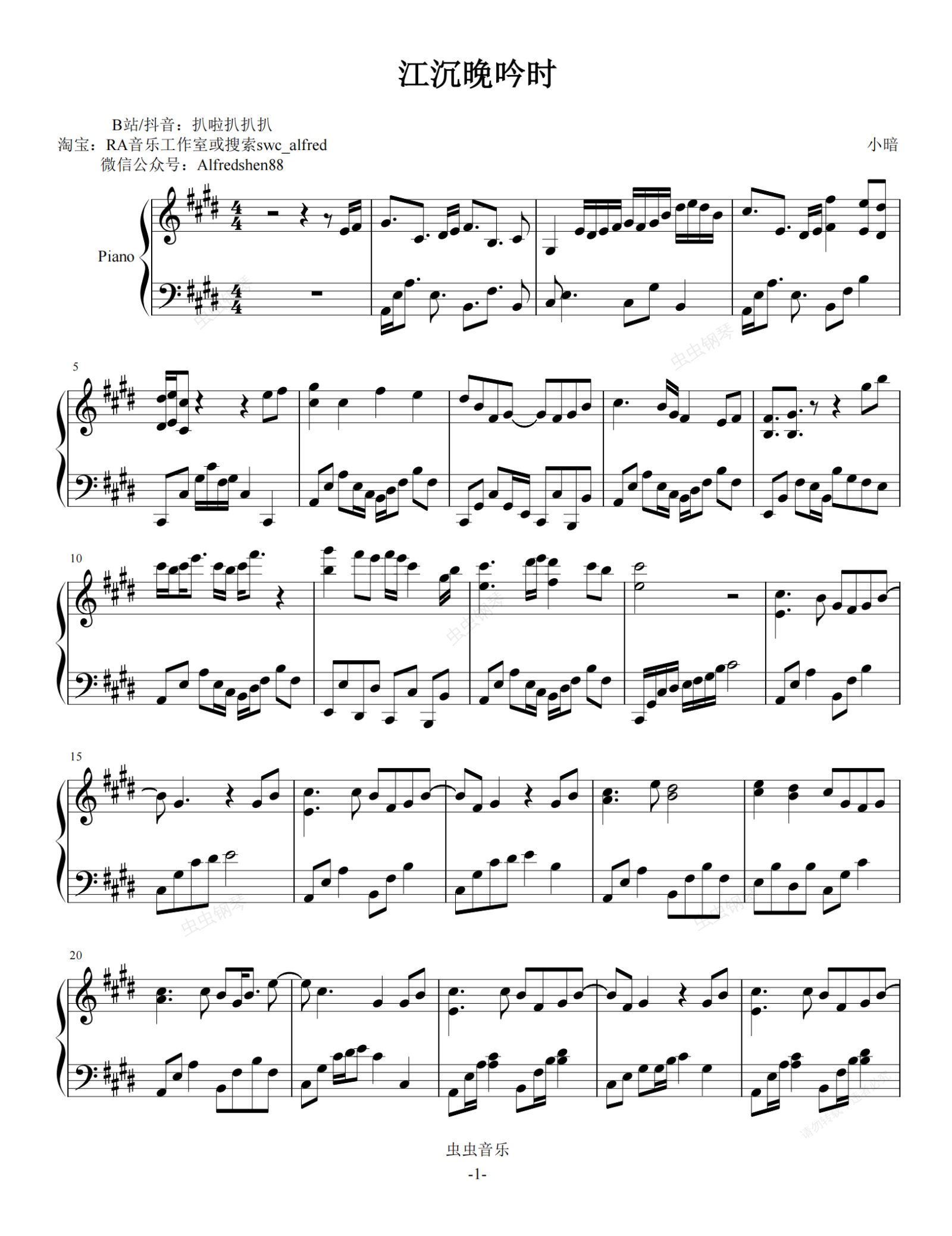 钢琴谱:江沉晚吟时-小暗 还原版