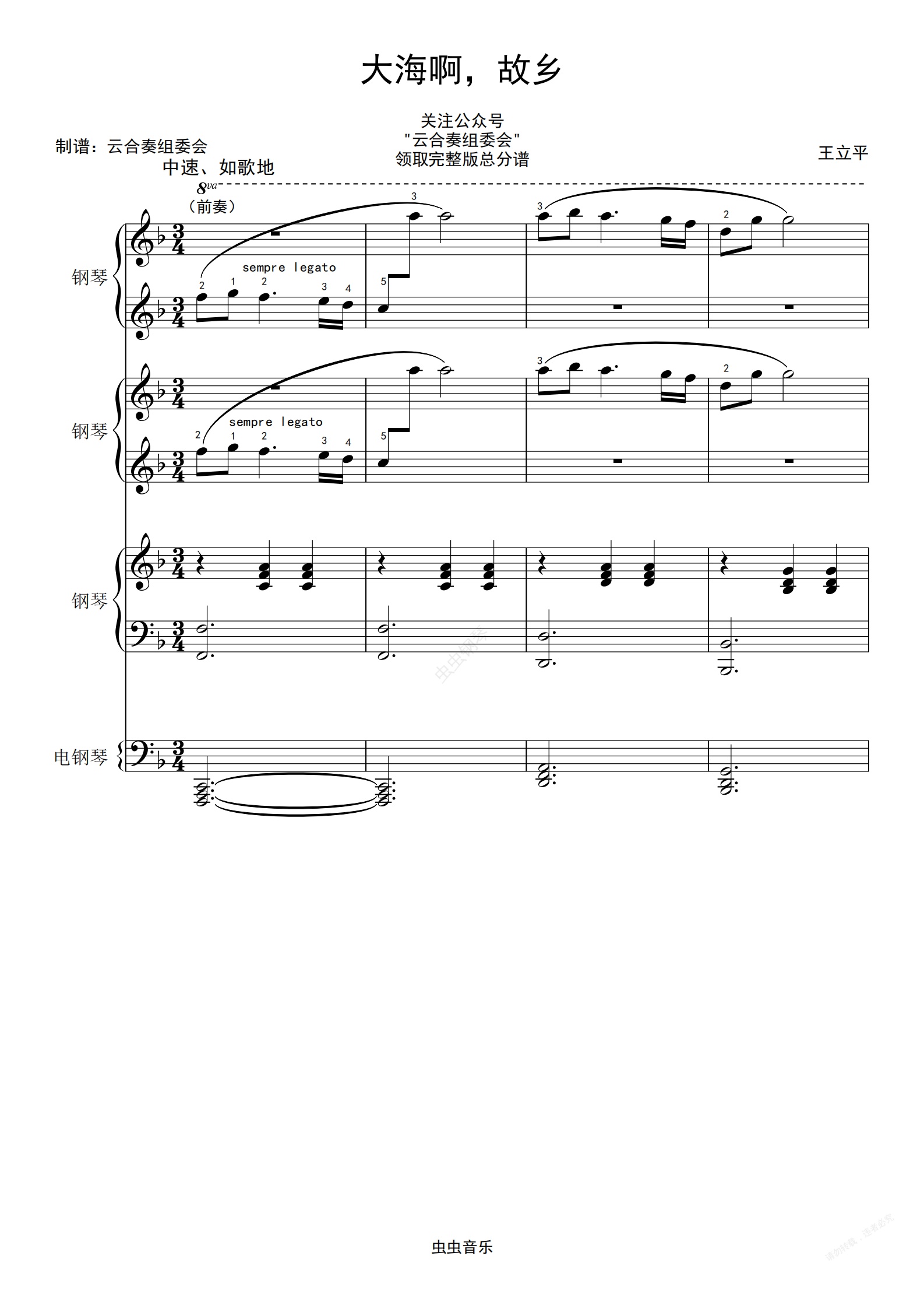 钢琴谱:《大海啊,故乡》-键盘重奏版