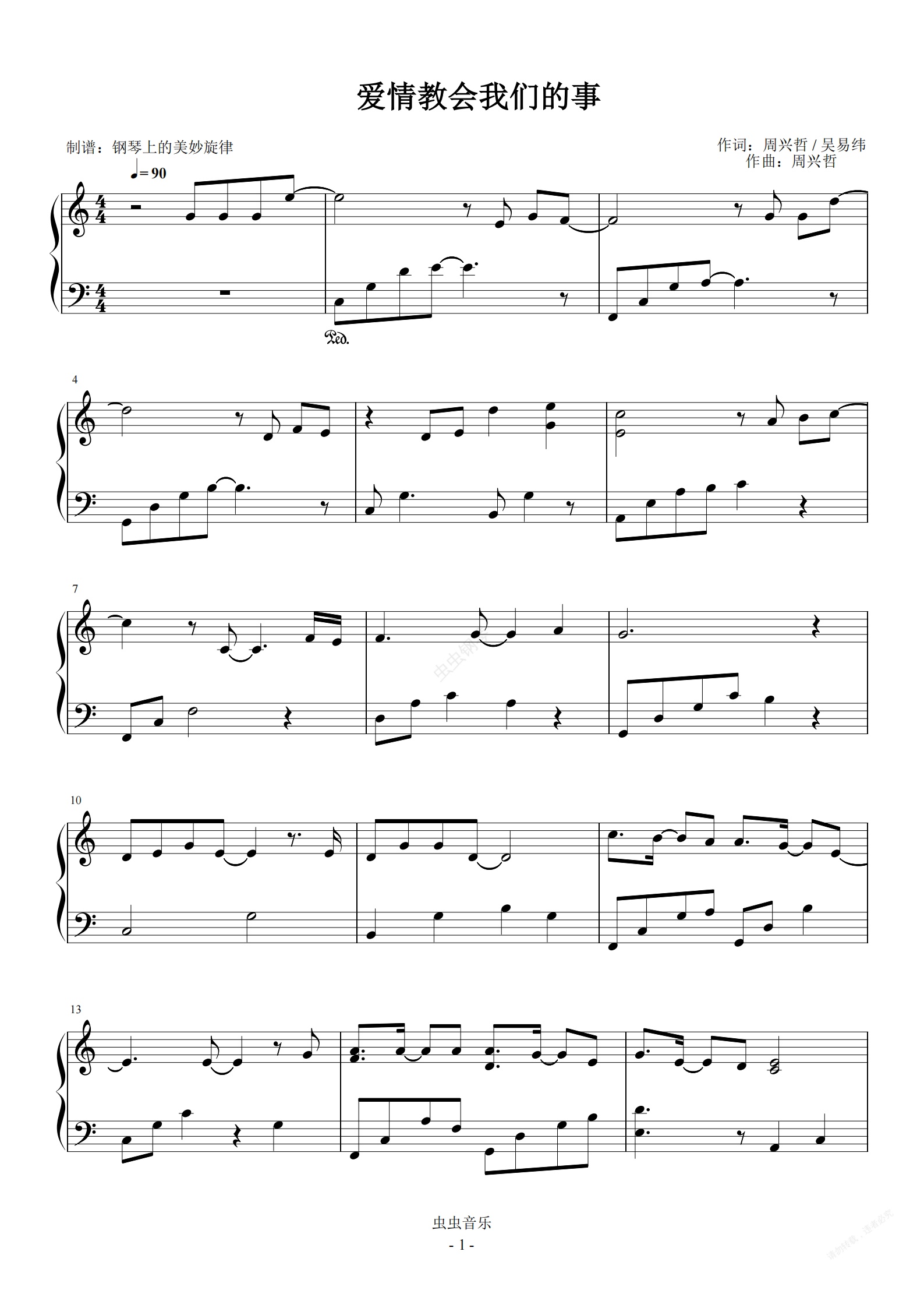 钢琴谱:爱情教会我们的事 C调简易版 周兴哲