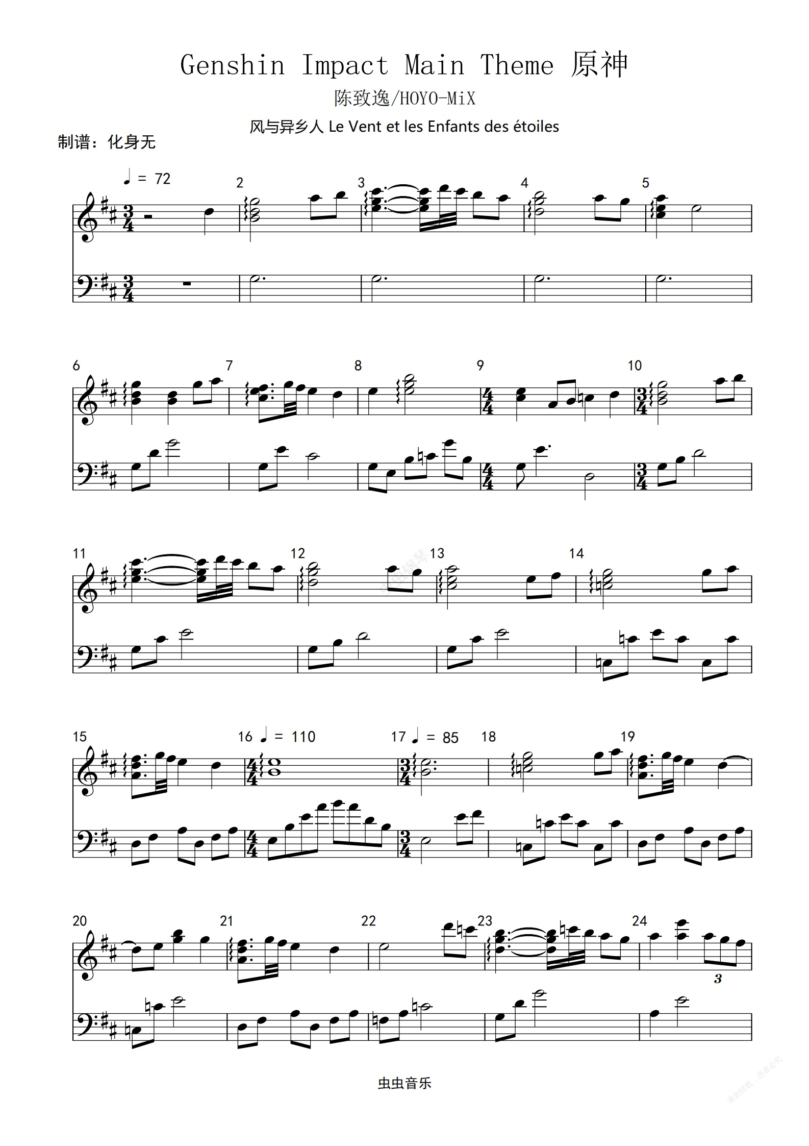 钢琴谱:原神主题曲BGM Genshin Impact Main Theme 简单完整版