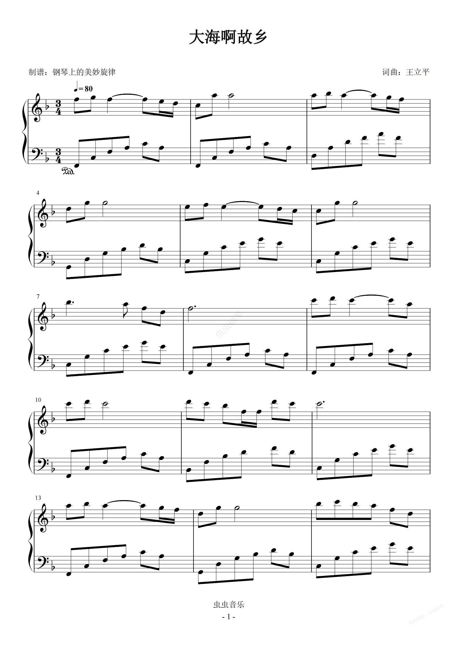 钢琴谱:大海啊故乡 简易版