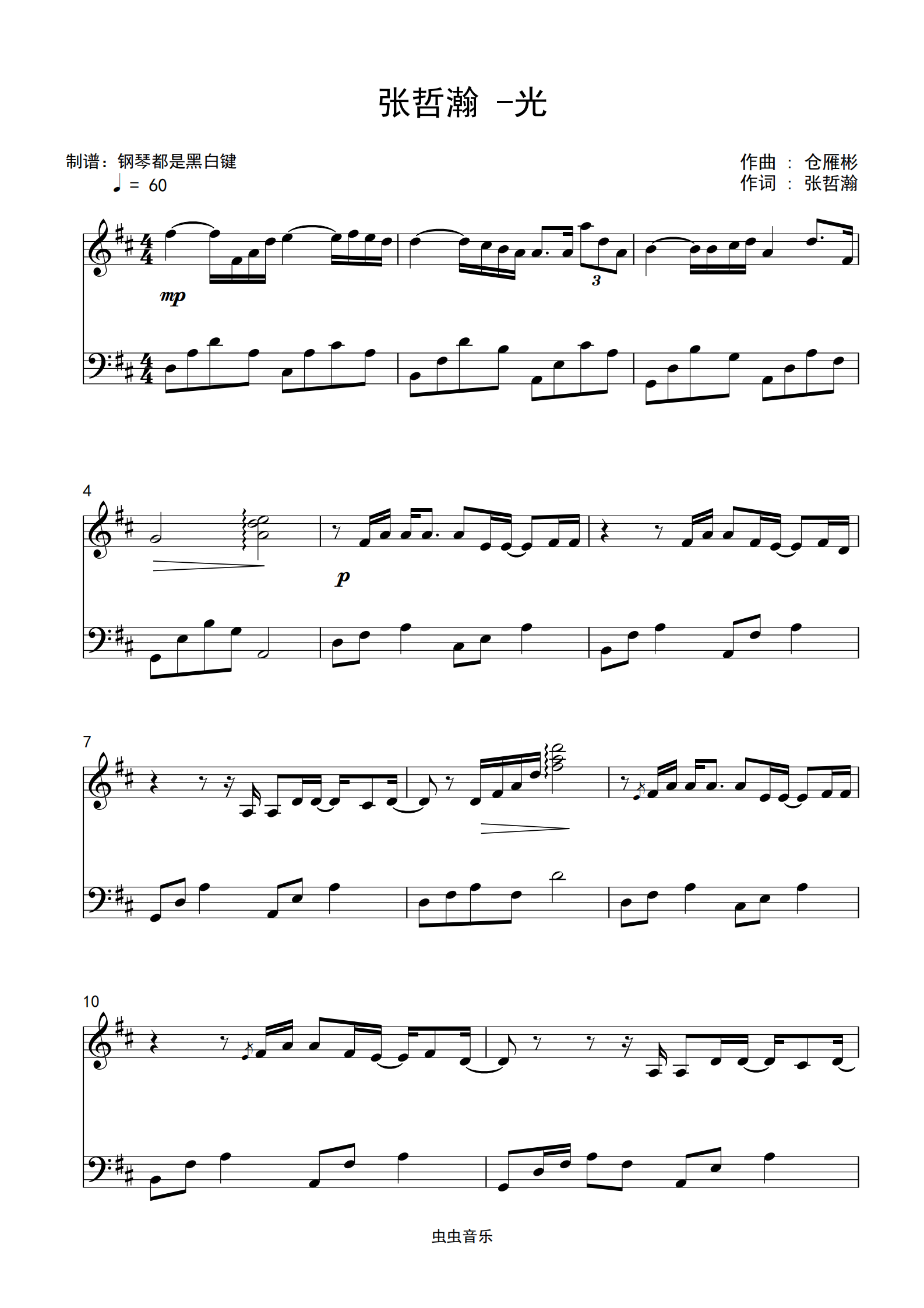钢琴谱:张哲瀚 -光 高还原 【简单易弹】