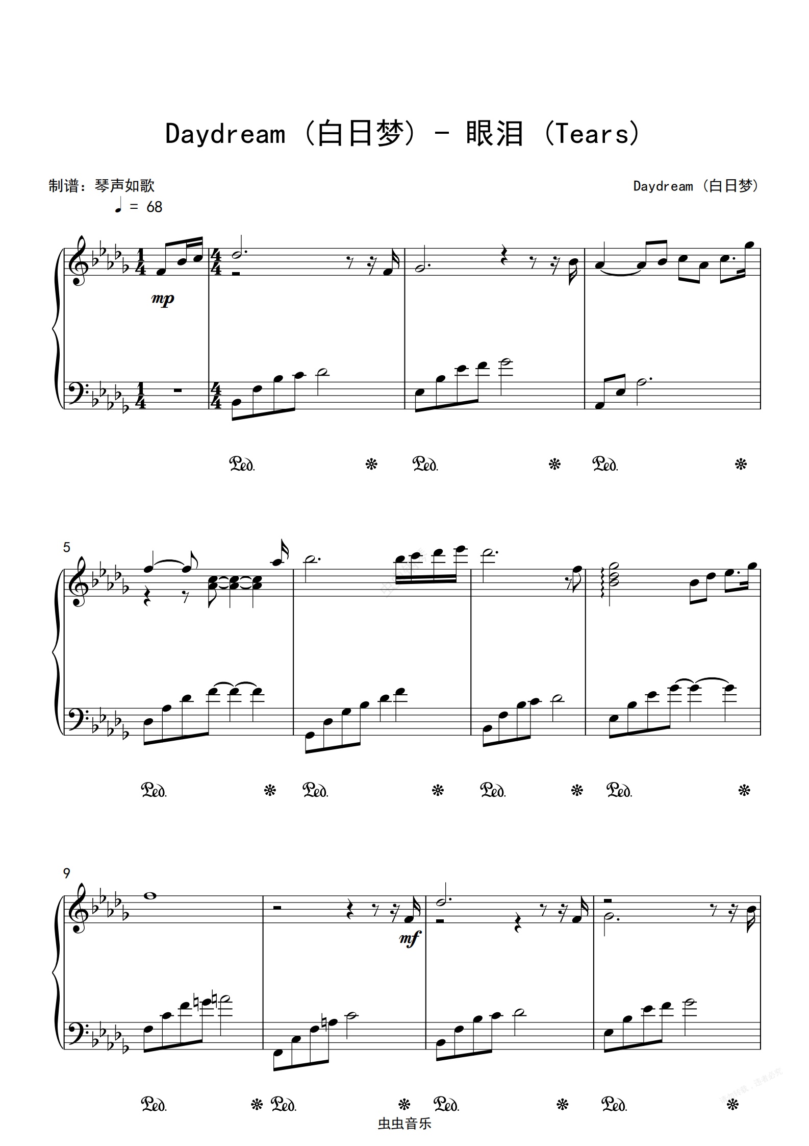 钢琴谱:眼泪 -Tears 【最泪目曲目】