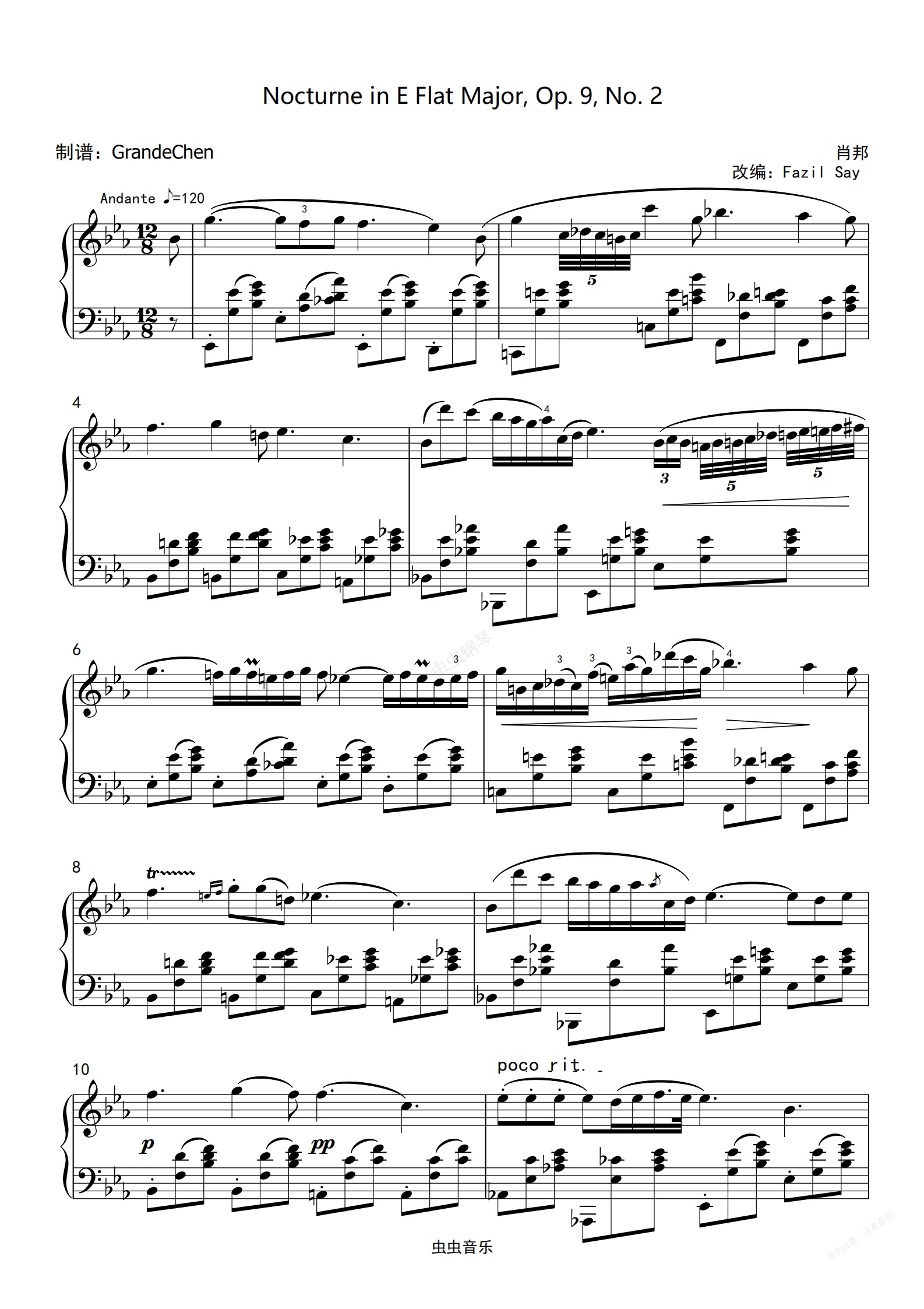 钢琴谱:肖邦降E大调夜曲Fazil Say改编版