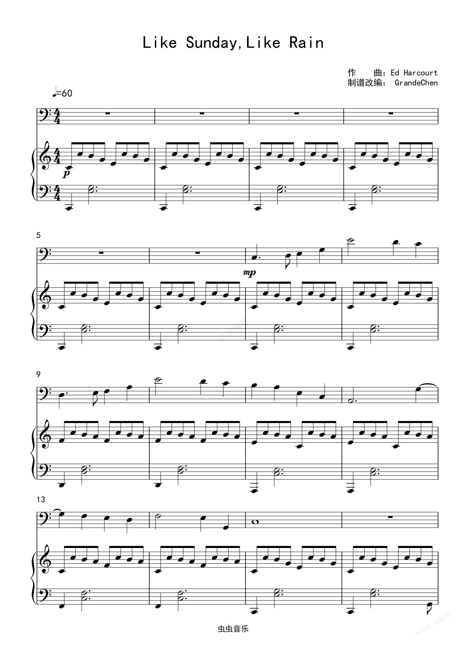 钢琴谱:如晴天似雨天电影片尾曲钢琴大提琴协奏版