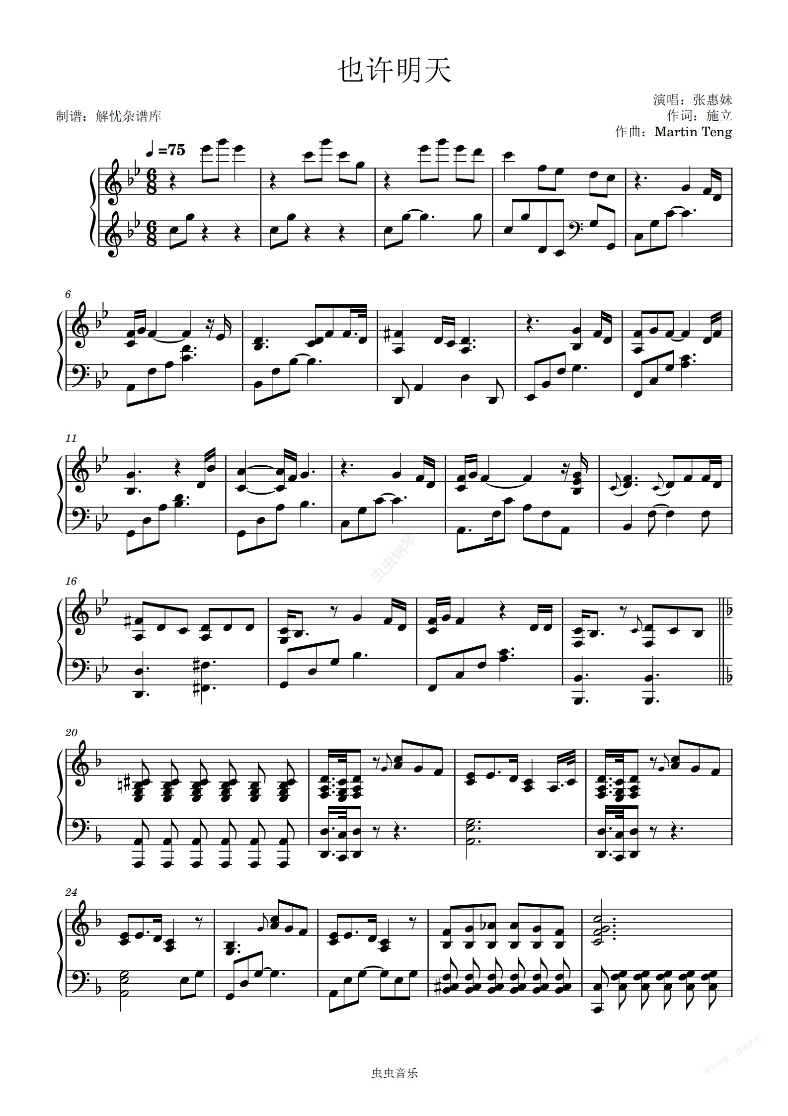 钢琴谱:也许明天