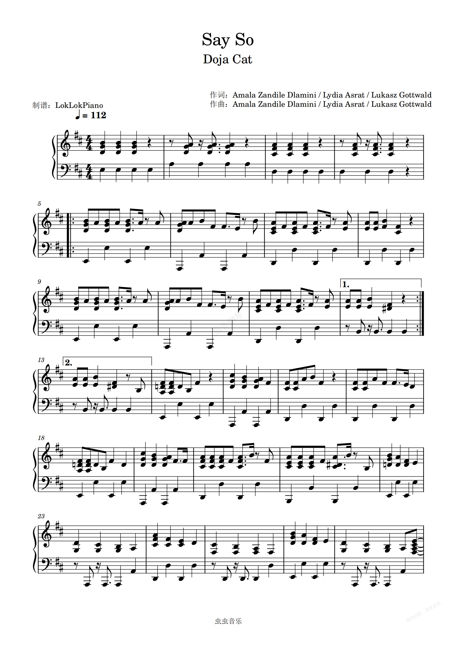 钢琴谱:Say So - Doja Cat | LokLok Piano演奏版