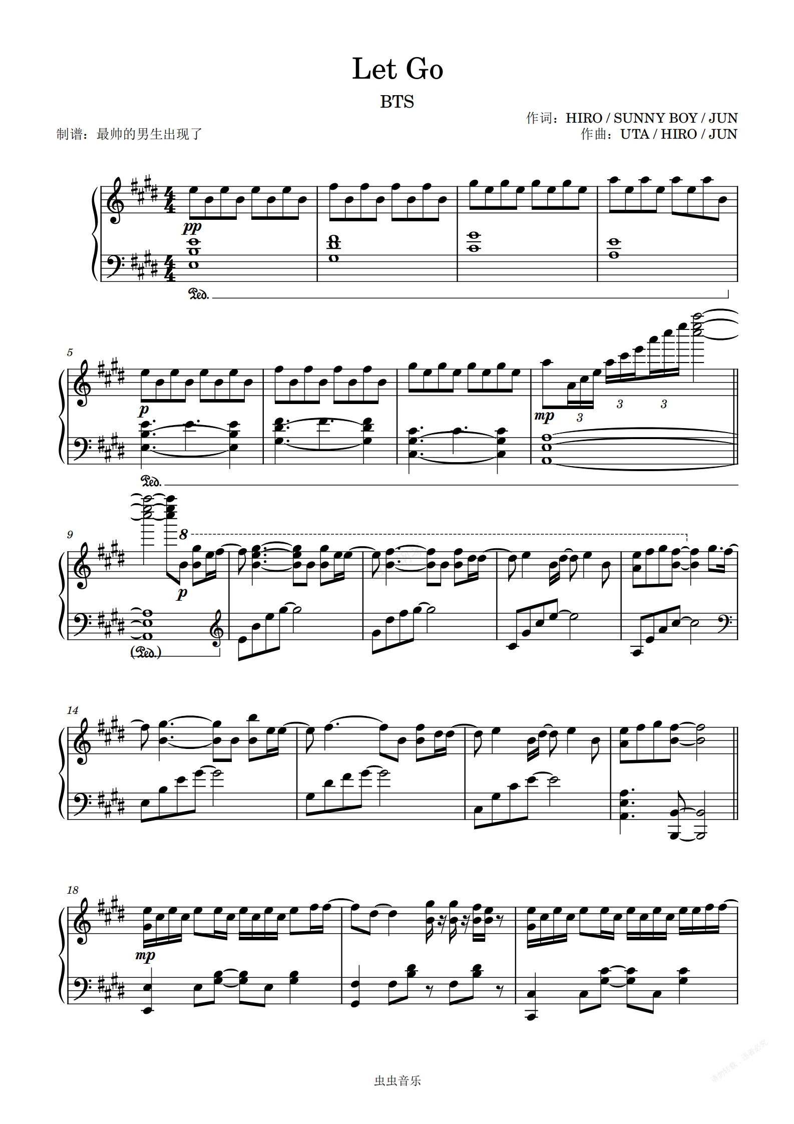 钢琴谱:Let Go - BTS