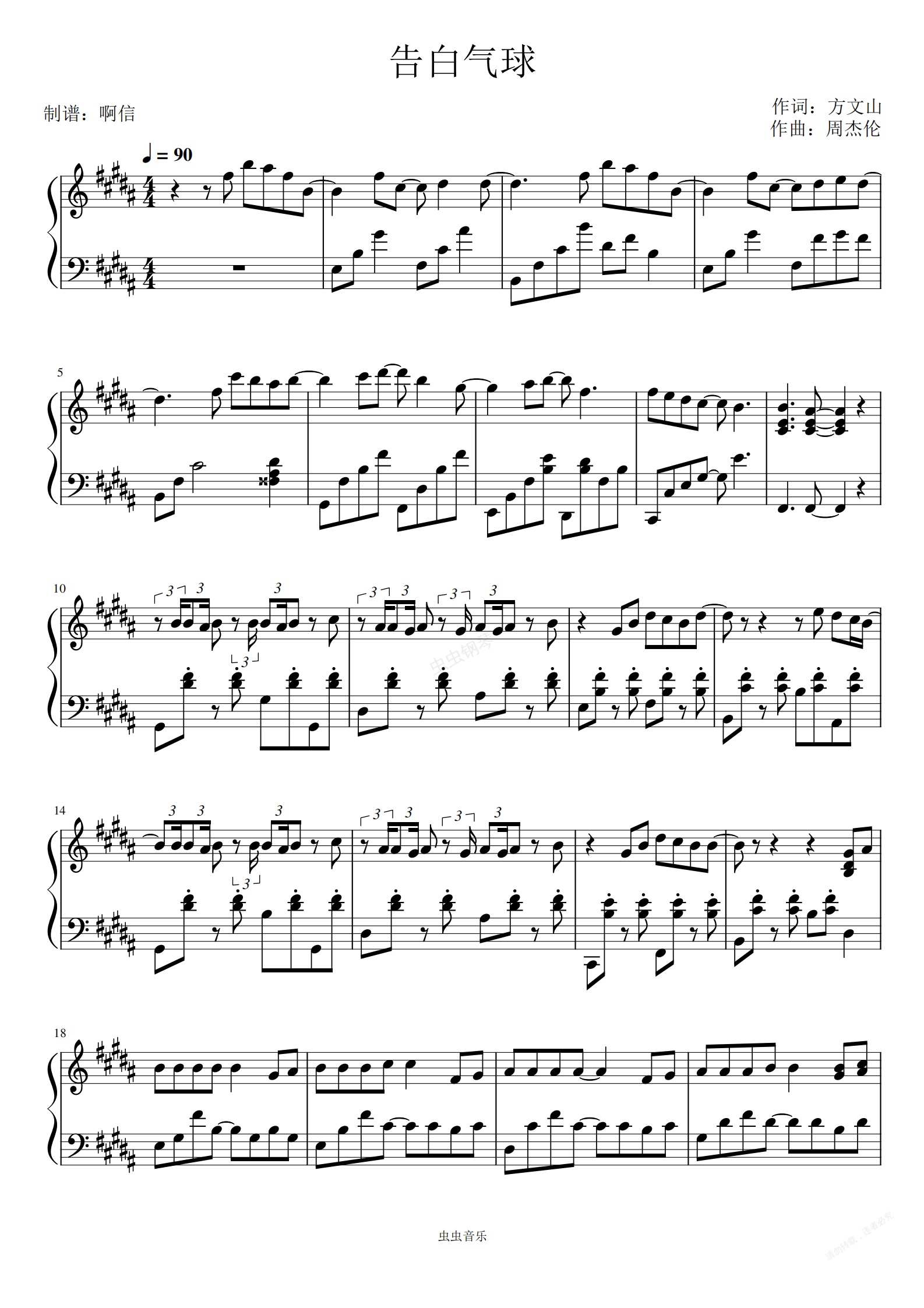 钢琴谱:极限原版-告白气球-B调--啊信改编