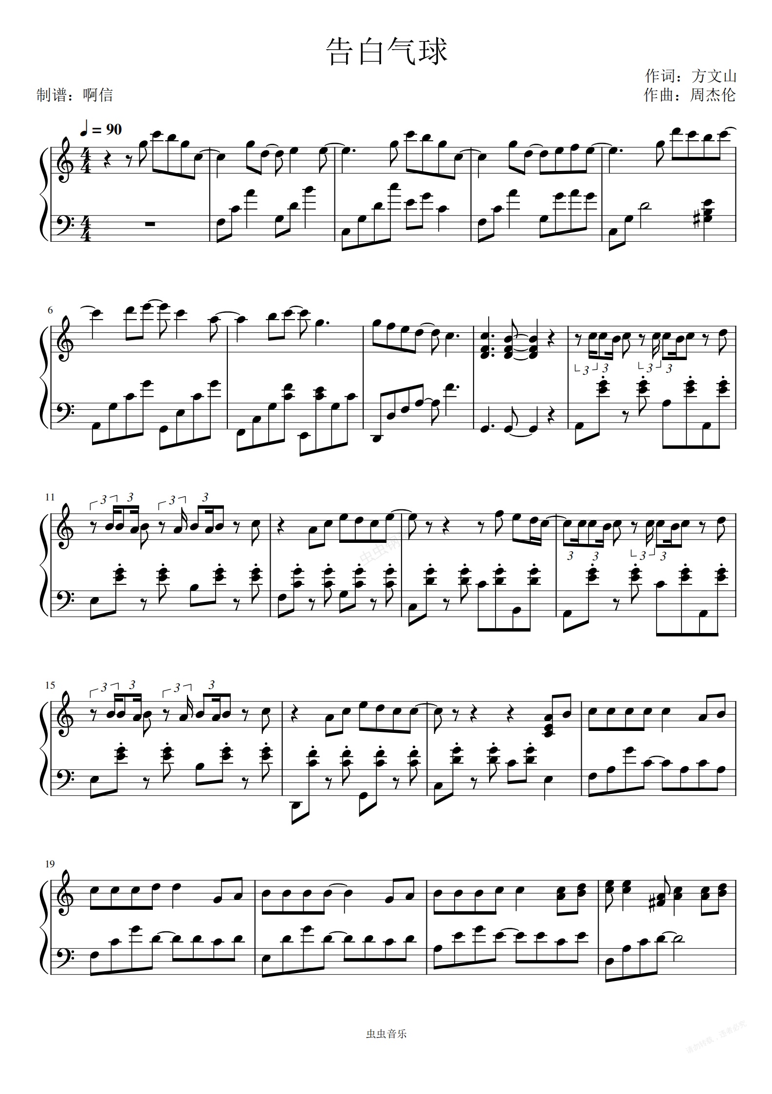 钢琴谱:性价比超高-告白气球-C调--啊信改编