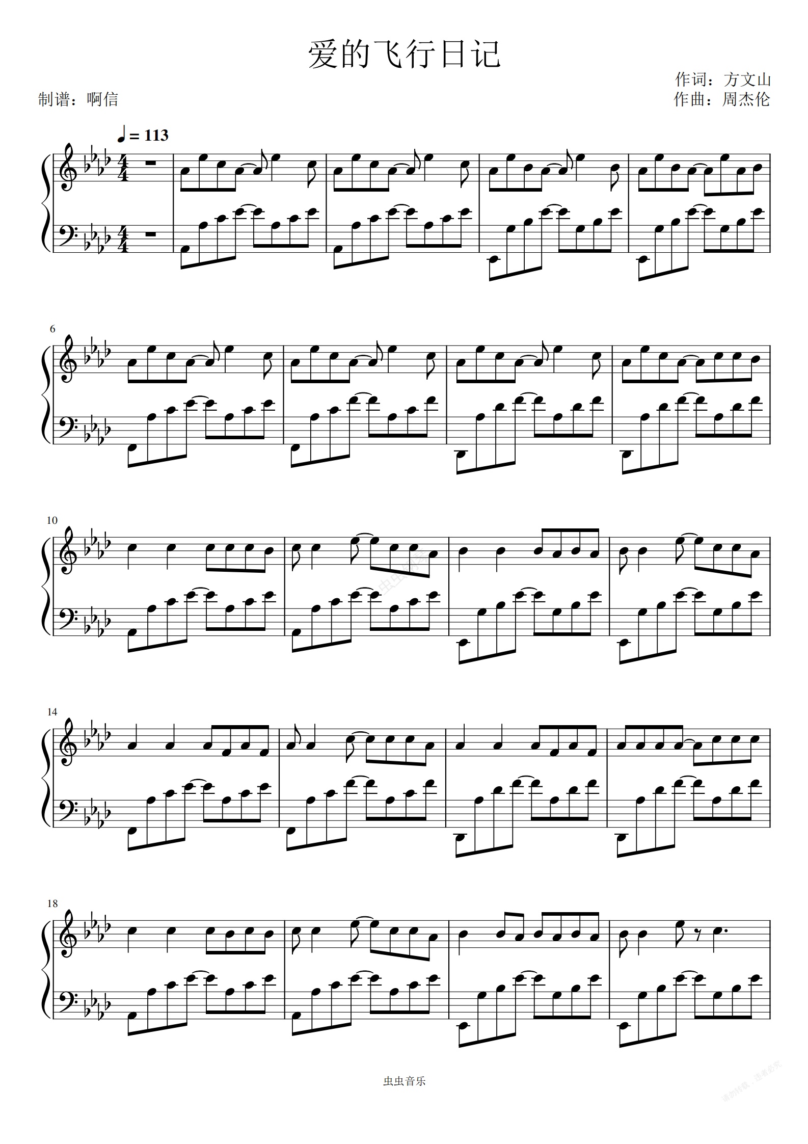 钢琴谱:极限原版-爱的飞行日记-Ab调--啊信改编
