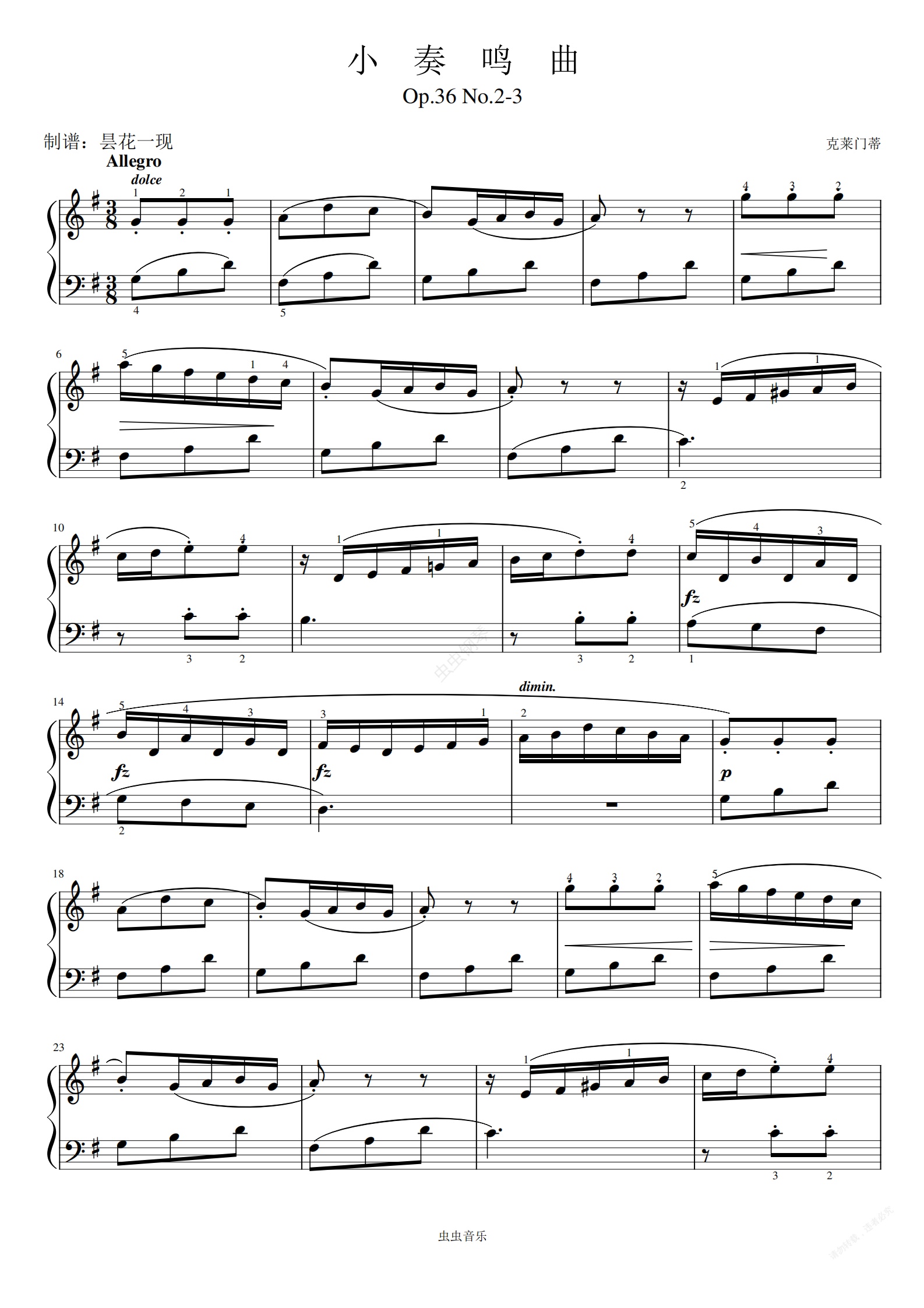 钢琴谱:22.克列门蒂-Op.36 No.2-3 G大调