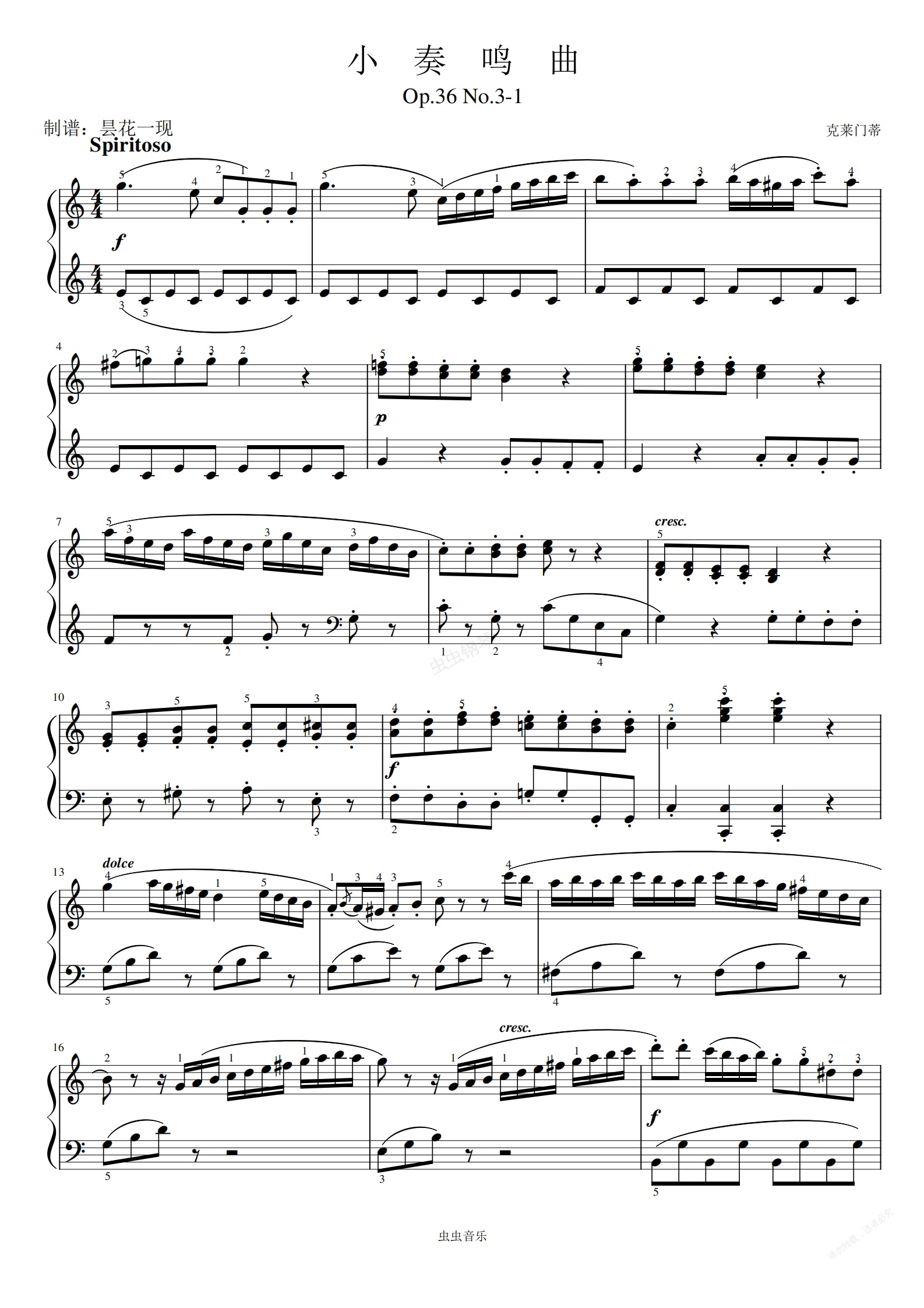钢琴谱:23.克列门蒂-Op.36 No.3-1 C大调