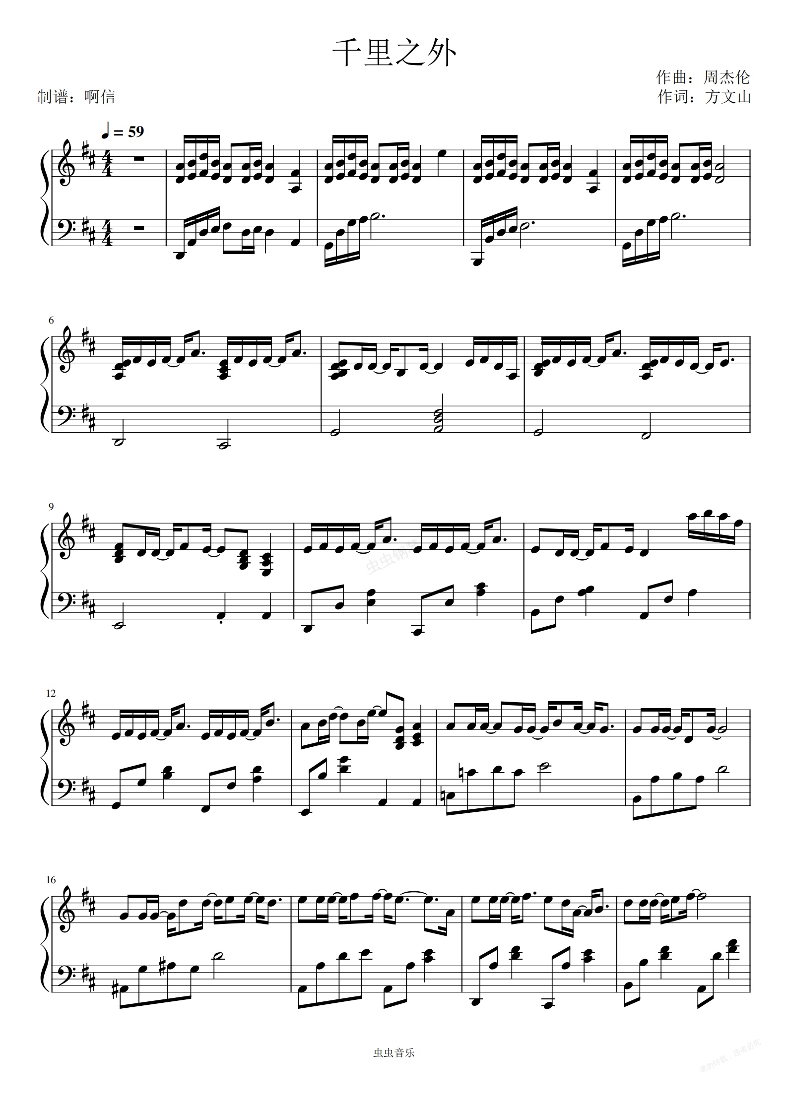 钢琴谱:极限原版-千里之外-D调--啊信改编