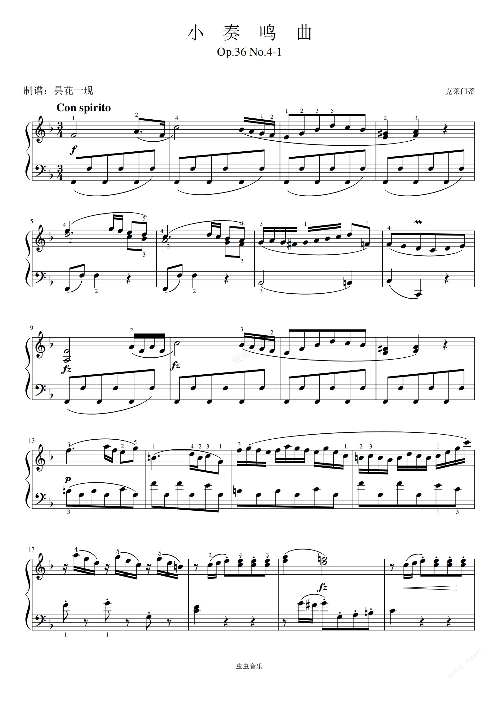 钢琴谱:25.克列门蒂-Op.36 No.4-1 F大调