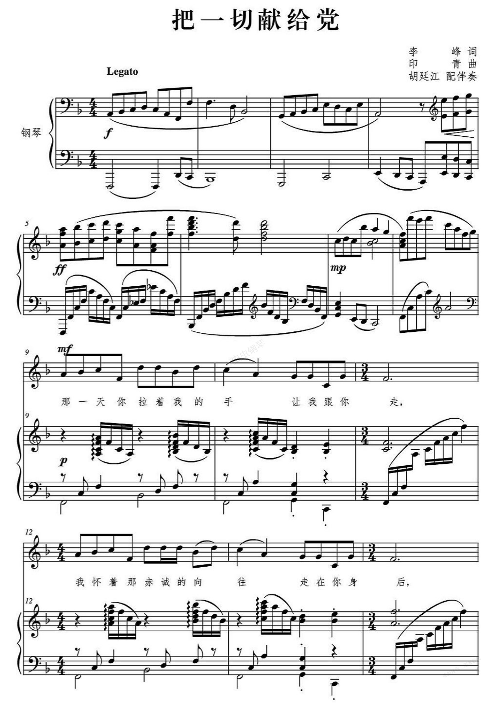 钢琴谱:把一切献给党(声乐正谱)