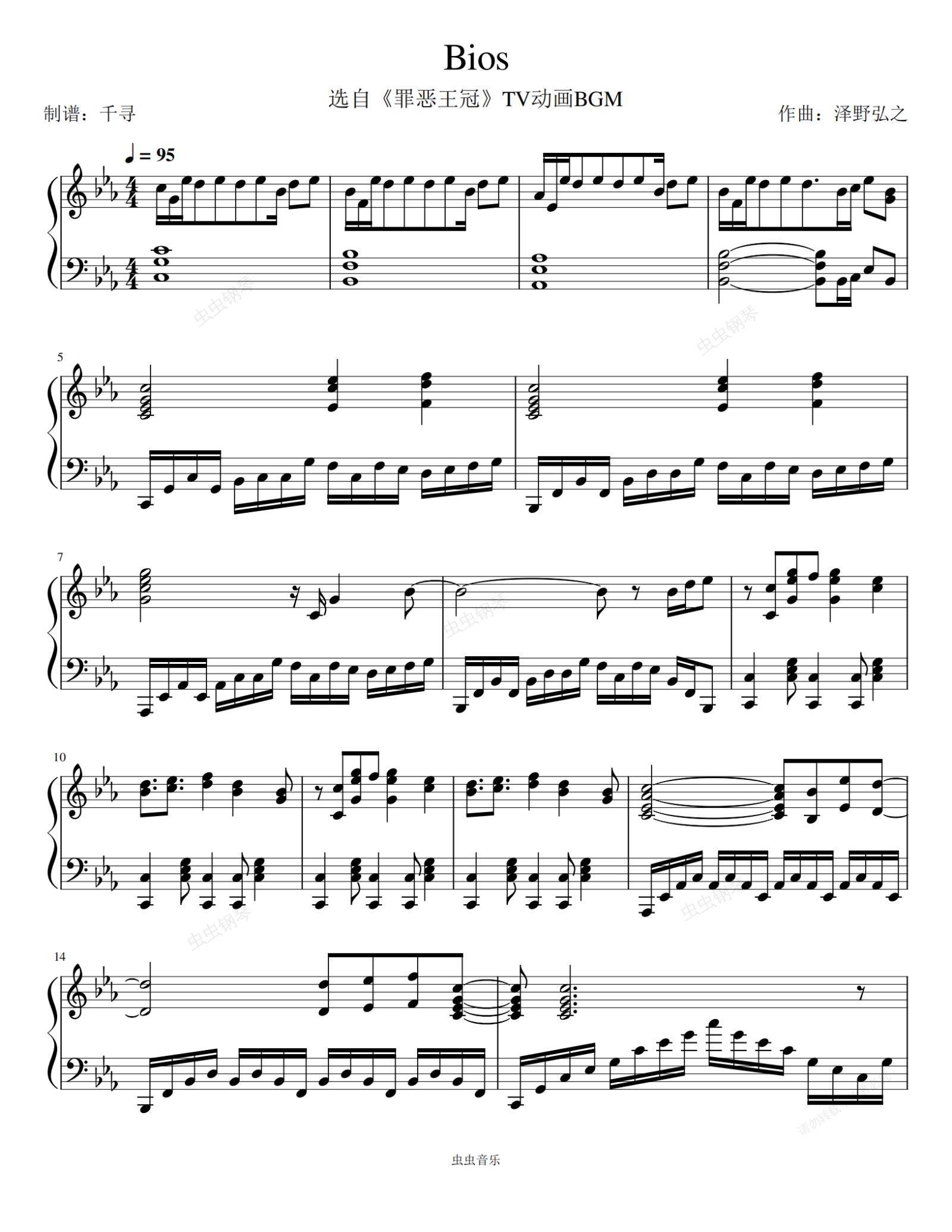 钢琴谱:Bios-《罪恶王冠》TV动画BGM