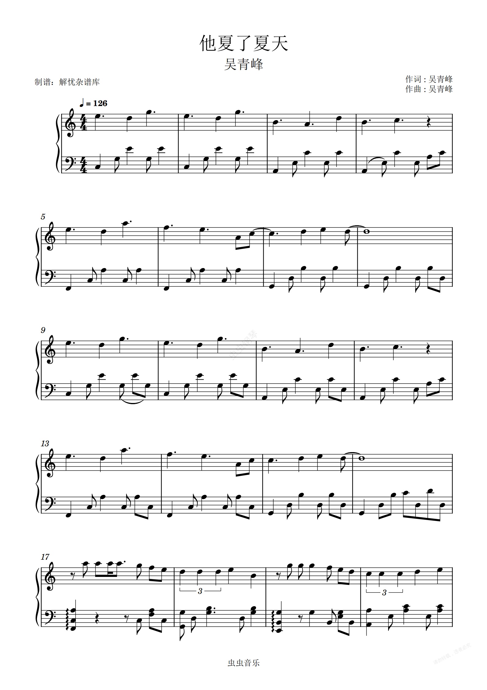 钢琴谱:他夏了夏天