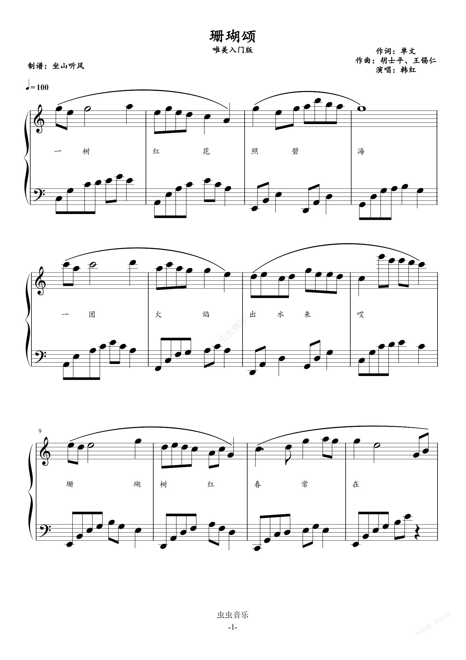 钢琴谱:珊瑚颂——唯美入门版(大音符)