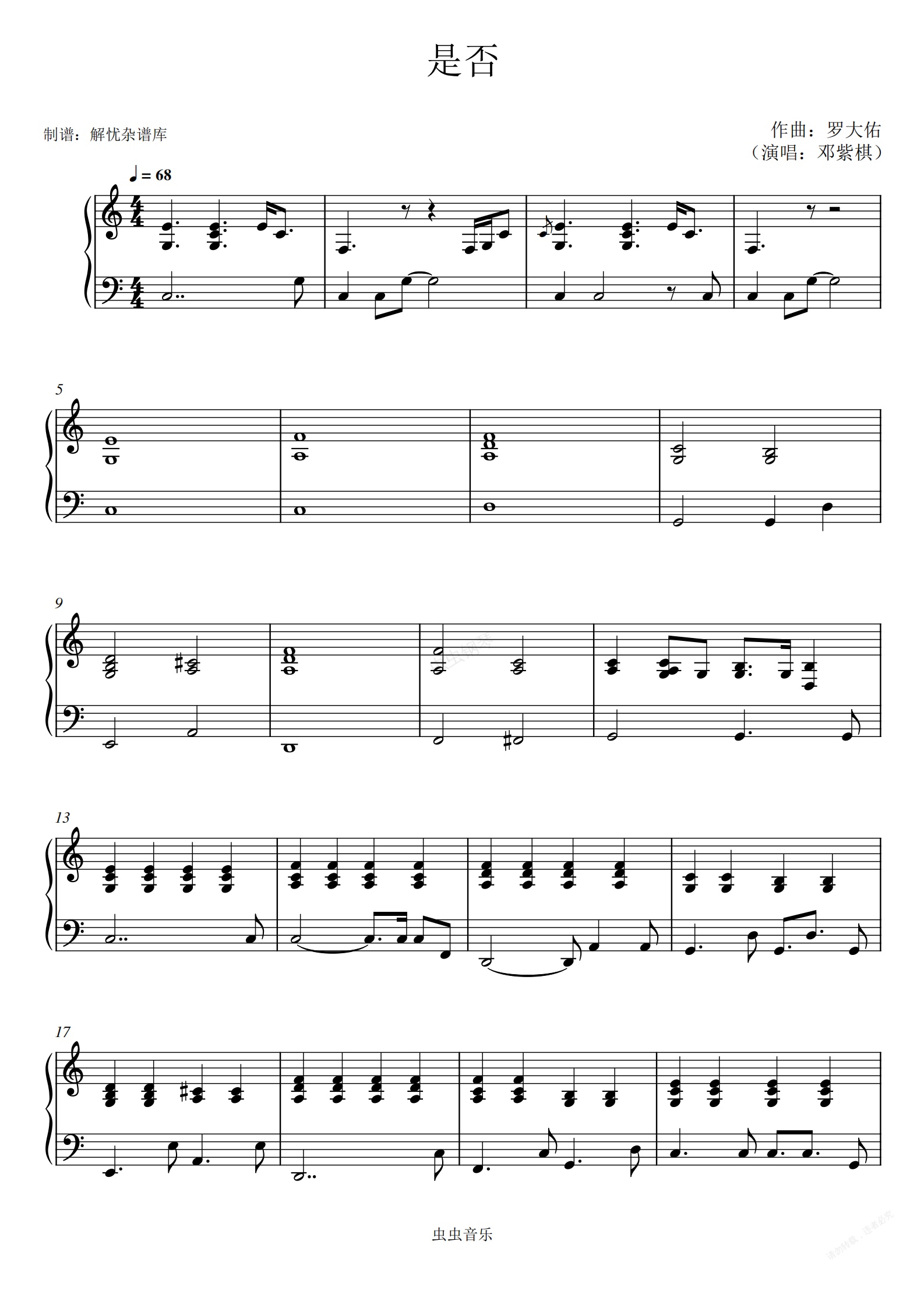 继Live Piano的首个作品“偶尔”之后,这一次,G.E.M.选择了80年代金曲-苏芮的“是否”,重新改编成钢琴版。《是否》是当年红极一时的电影《搭错车》的主题曲之一,与另外几首电影主题曲《酒干倘卖无》、《一样的月光》、《请跟我来》广泛流行,更被喻为中文流行音乐史最重要及最出色的作品。G.E.M. Live Piano第二首作品《是否》,是向将灵魂乐融入华语乐坛的代表性人物苏芮的致敬,也希望能为这不朽的名曲再添生命力。