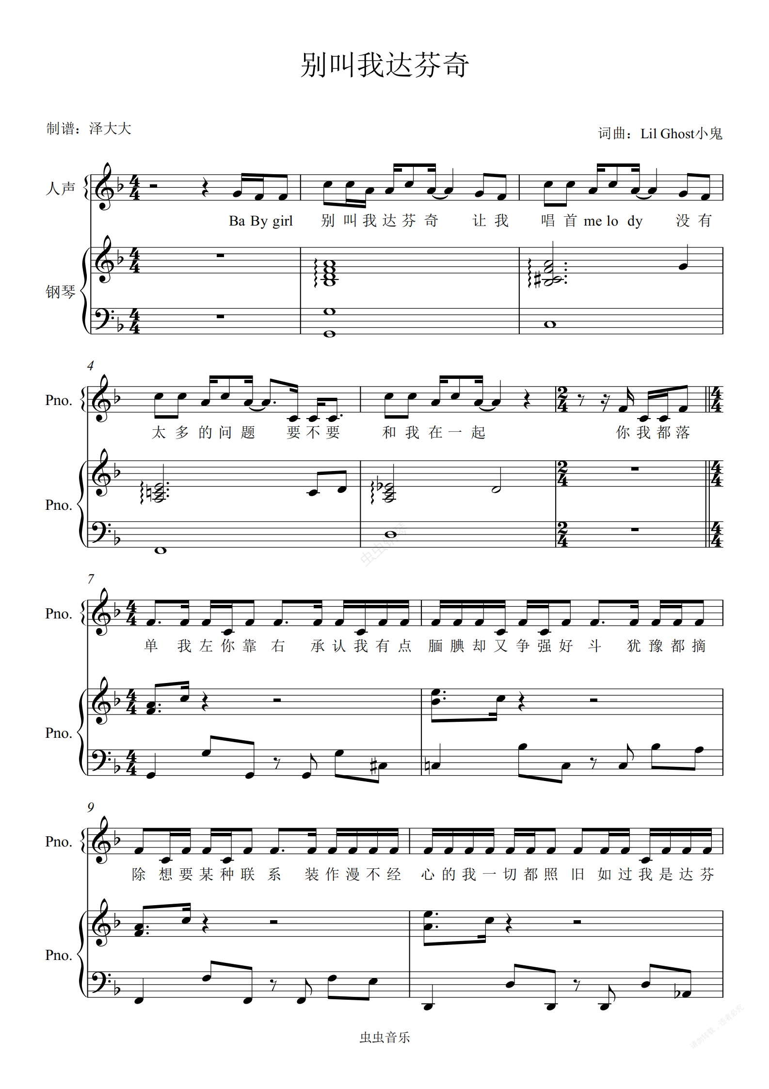 钢琴谱:别叫我达芬奇【F调精编弹唱附词】泽大大 Lil Ghost小鬼