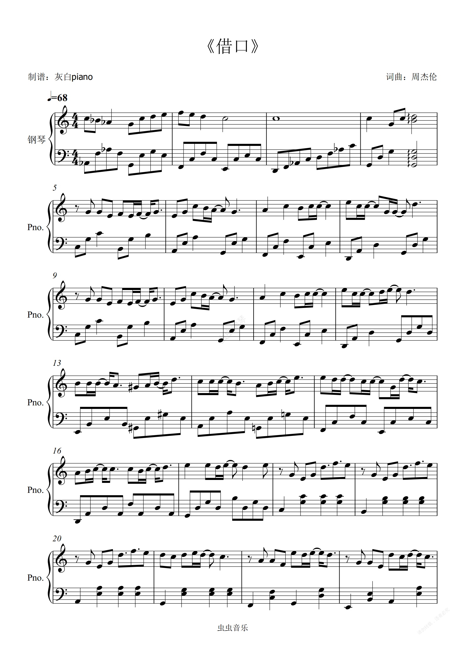 钢琴谱:《借口》周杰伦-c调简易完整版