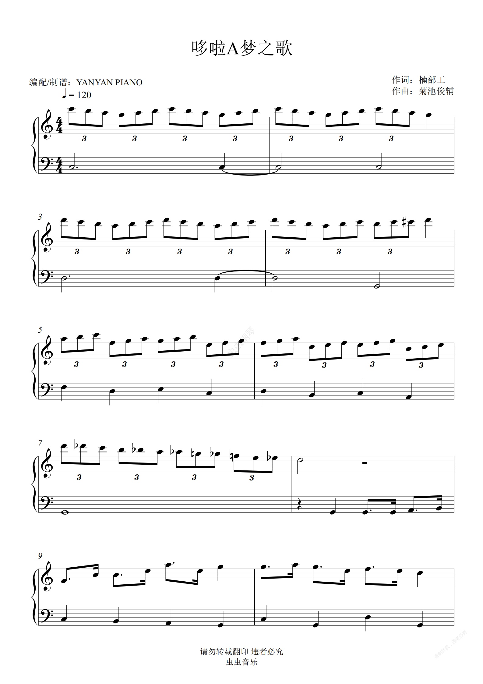 钢琴谱:【哆啦A梦之歌】ドラエもんの歌(哆啦A梦-小叮当-机器猫)