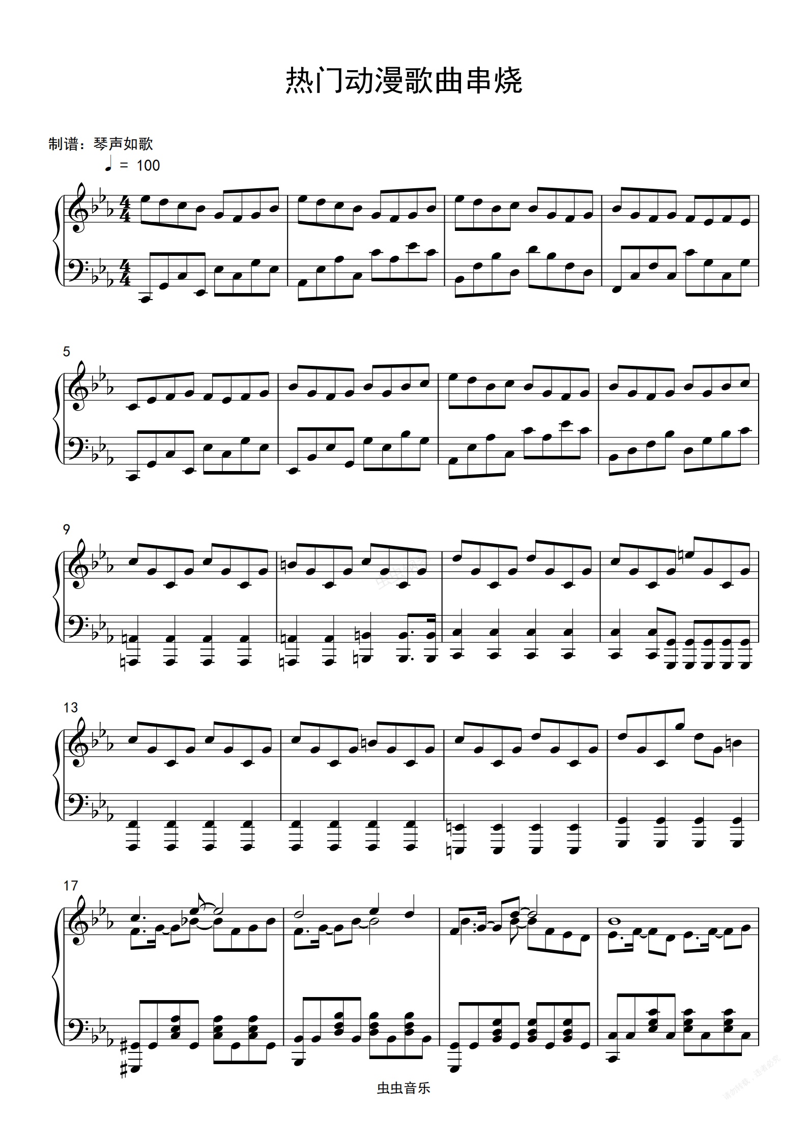 钢琴谱:二次元动漫歌曲串烧 一次弹个够