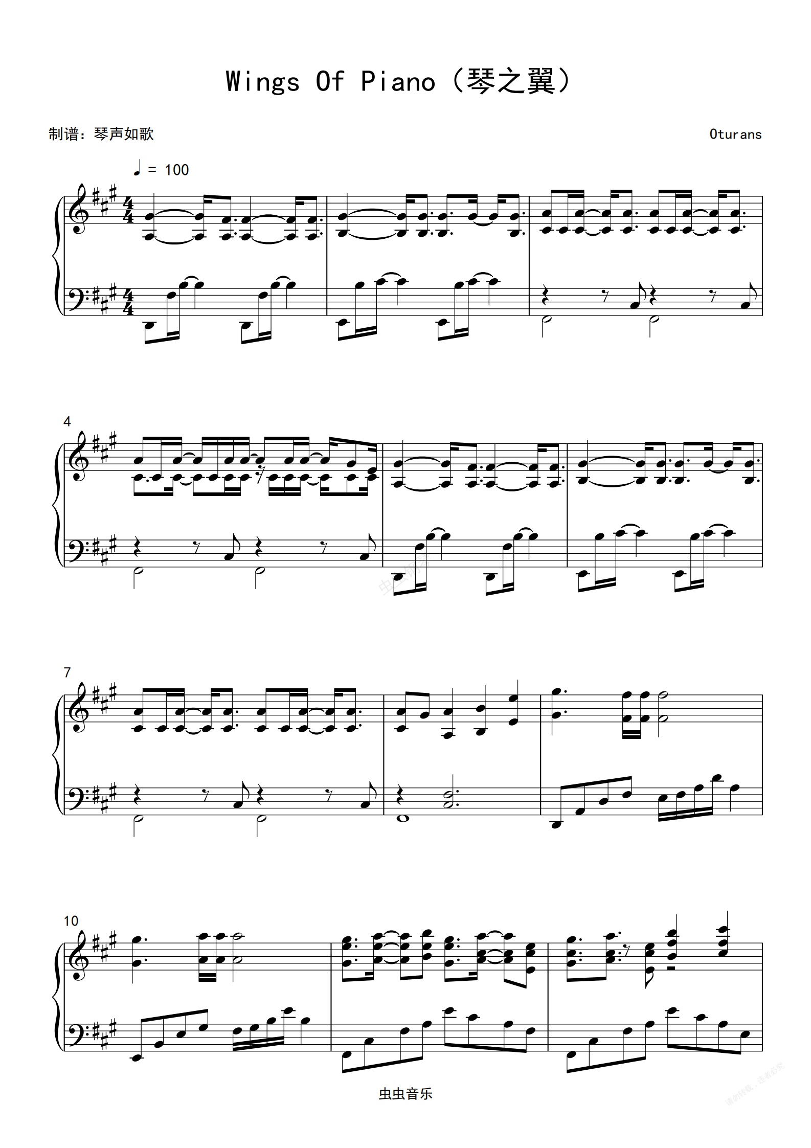 钢琴谱:Wings Of Piano(琴之翼)【精品钢琴独奏】
