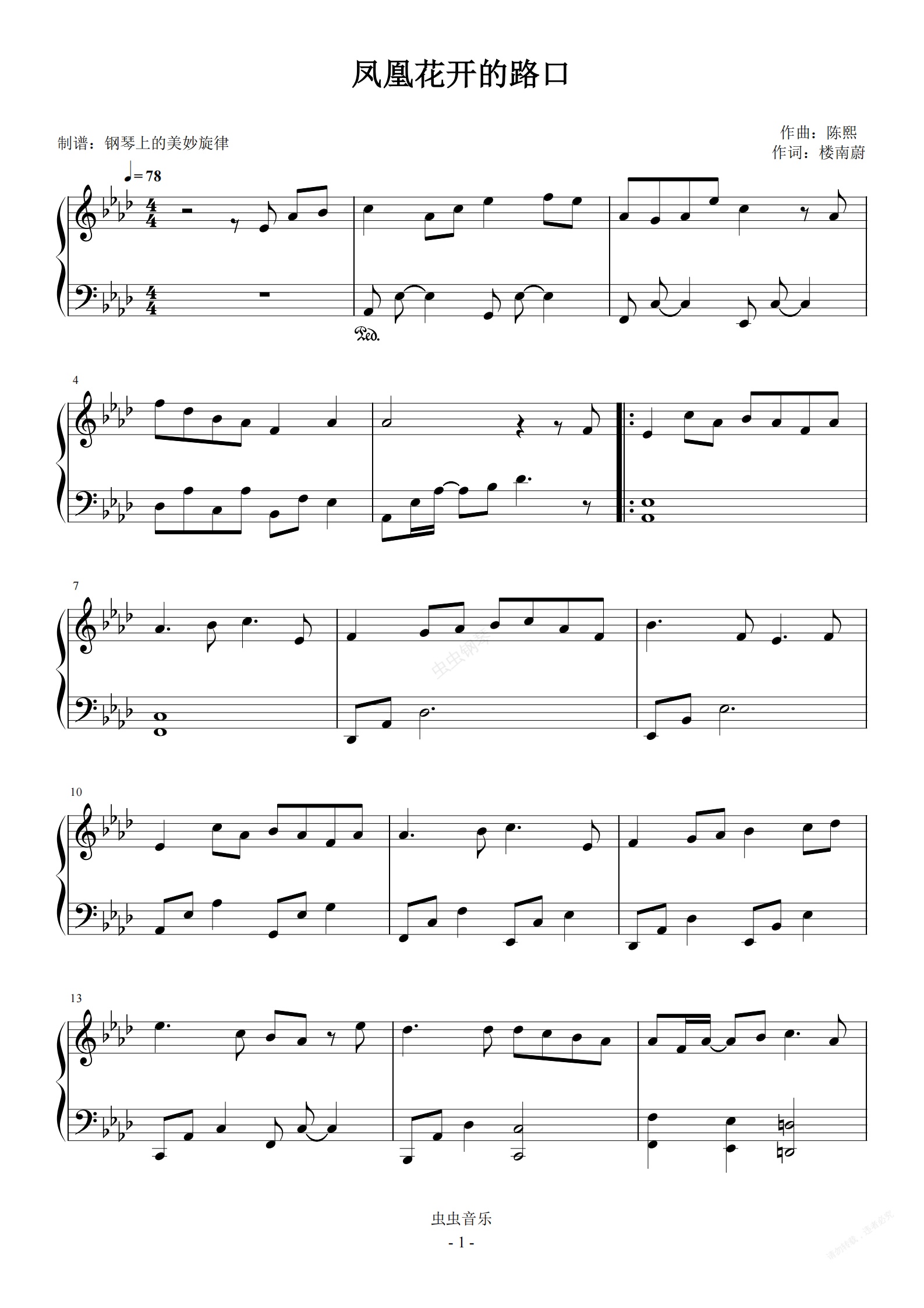 钢琴谱:凤凰花开的路口 简易版 林志炫