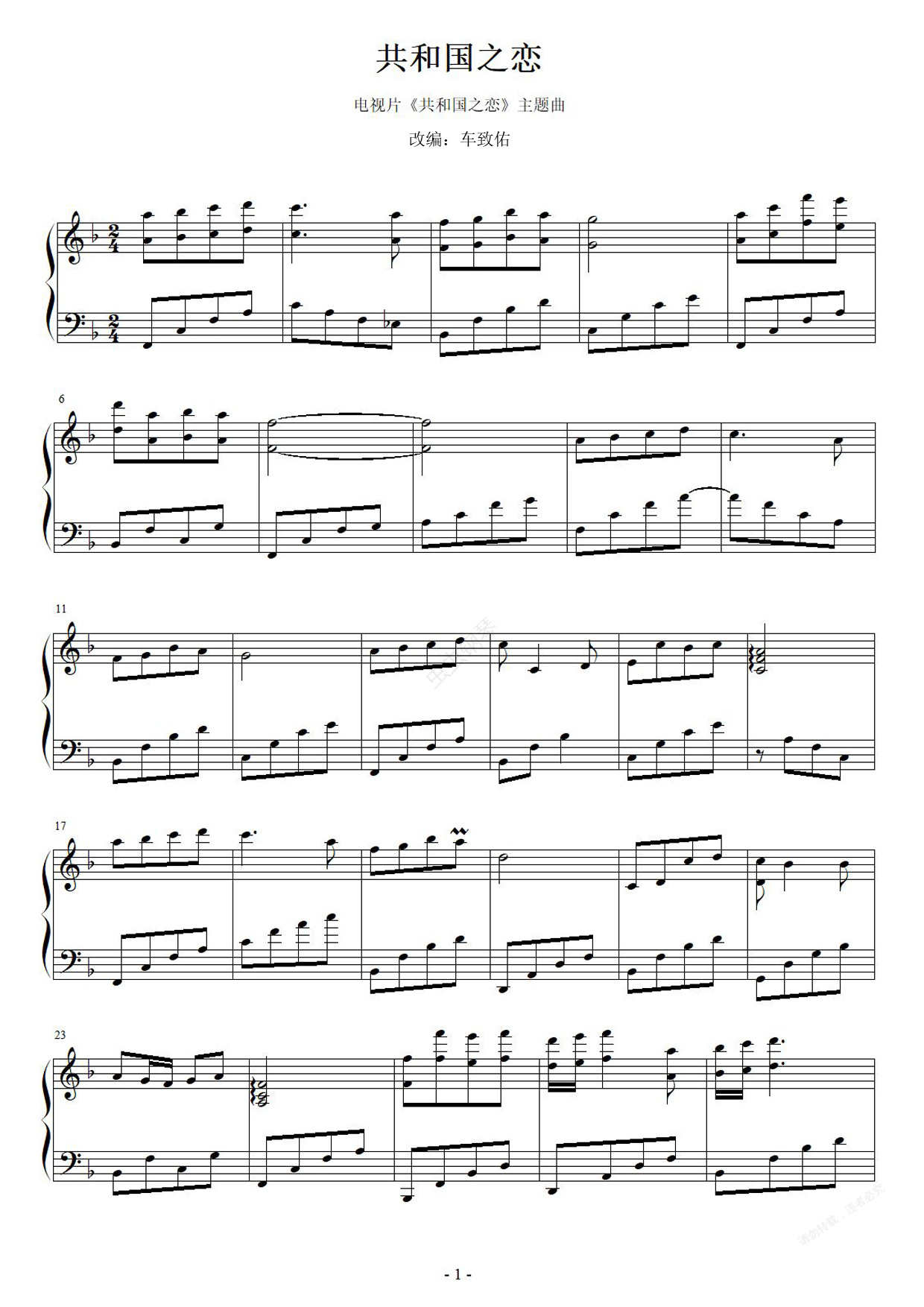 钢琴谱:共和国之恋(轻松版)生死相依我苦恋着你