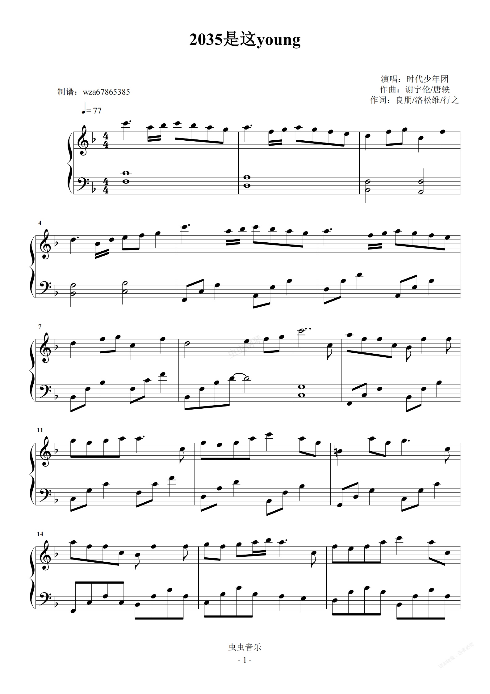钢琴谱:2035是这young