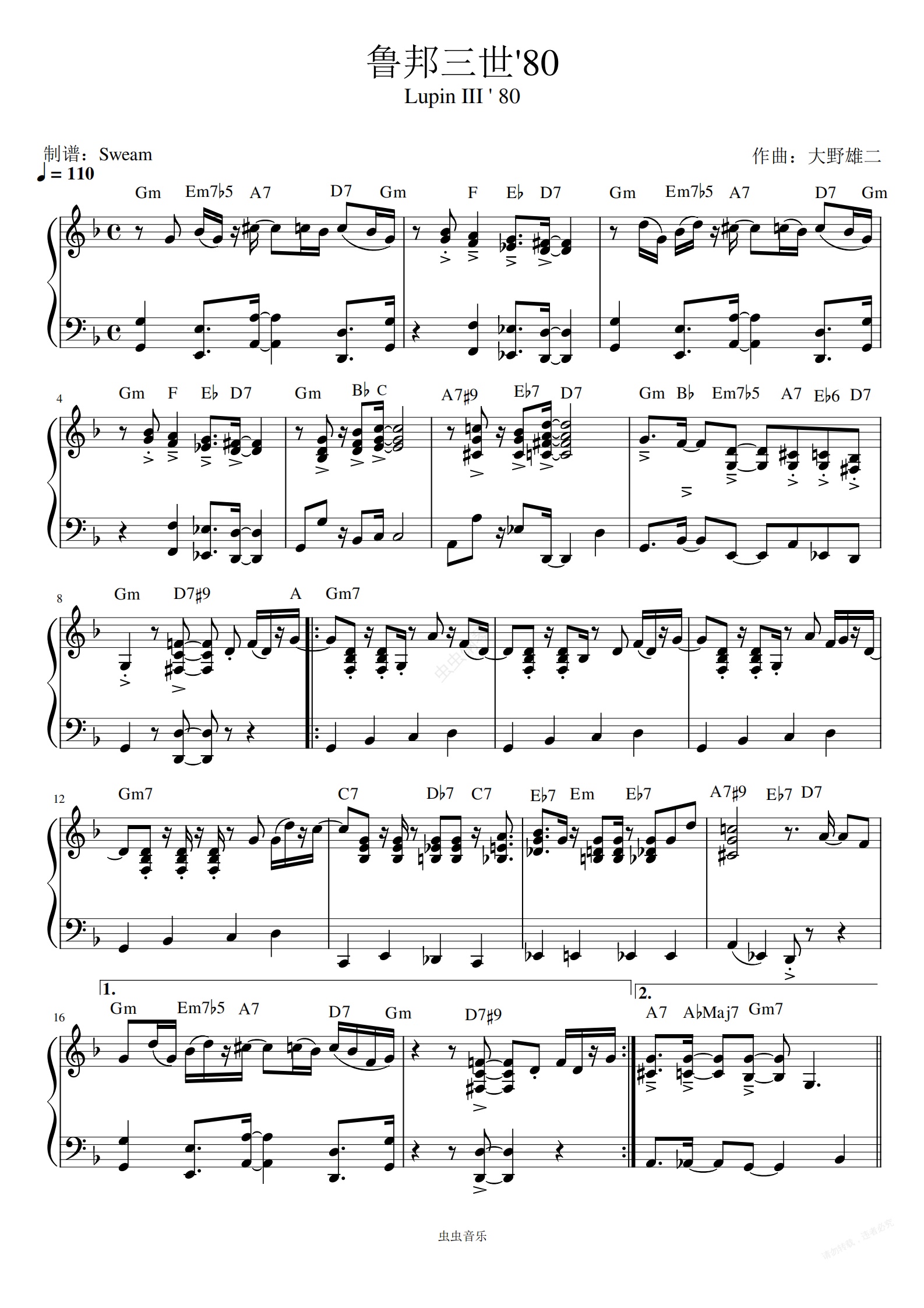 钢琴谱:鲁邦三世'80(Jazz版带和弦)