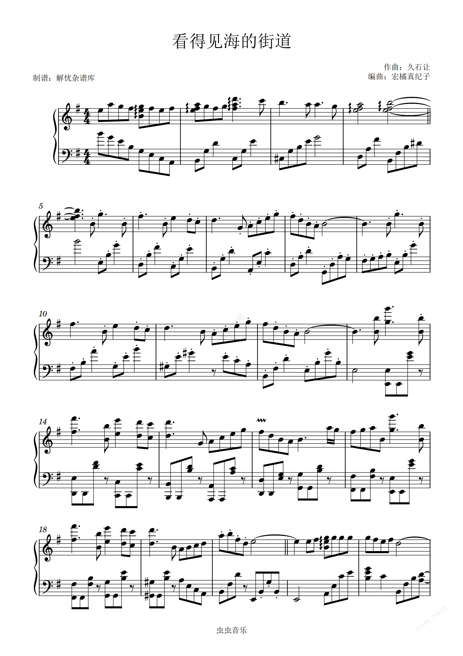 钢琴谱:看得见海的味道/海の見える街