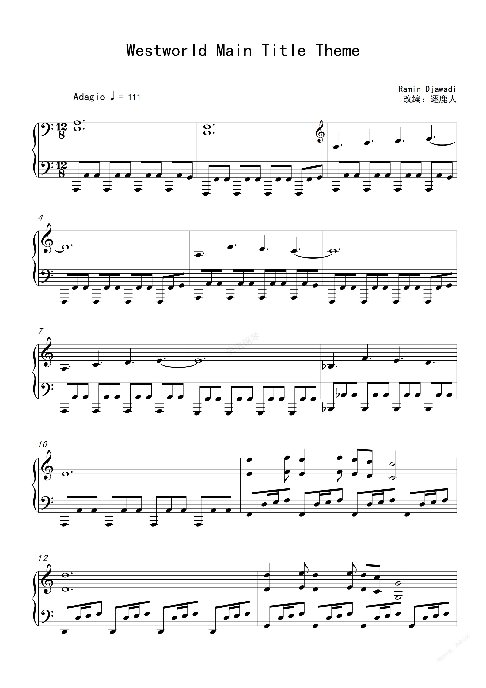 《西部世界》片头曲钢琴独奏版,最还原的钢琴谱,难度不大