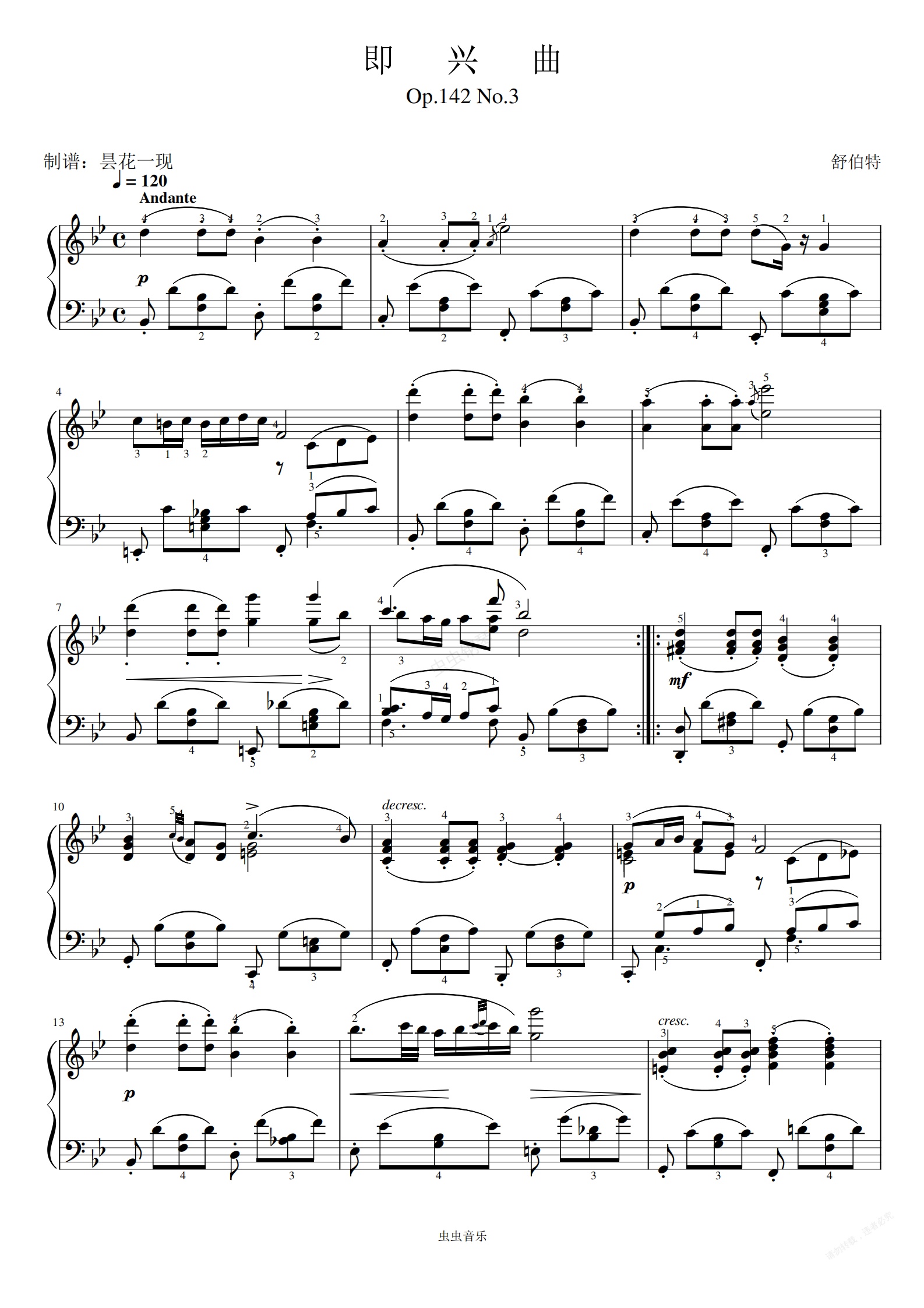 钢琴谱:49.舒伯特-即兴曲Op.142 No.3 B大调