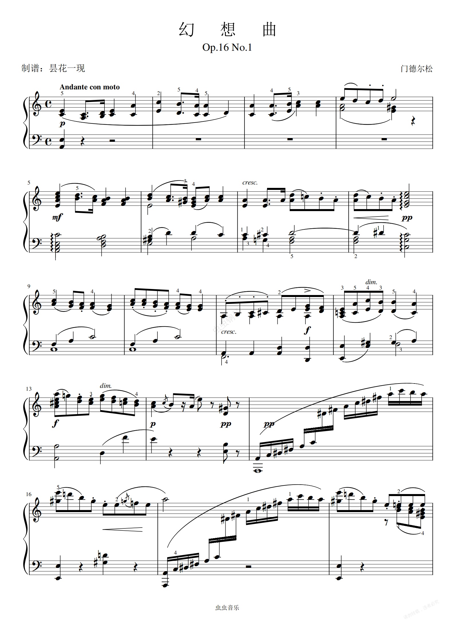钢琴谱:53.门德尔松-幻想曲Op.16 No.1 a 小调