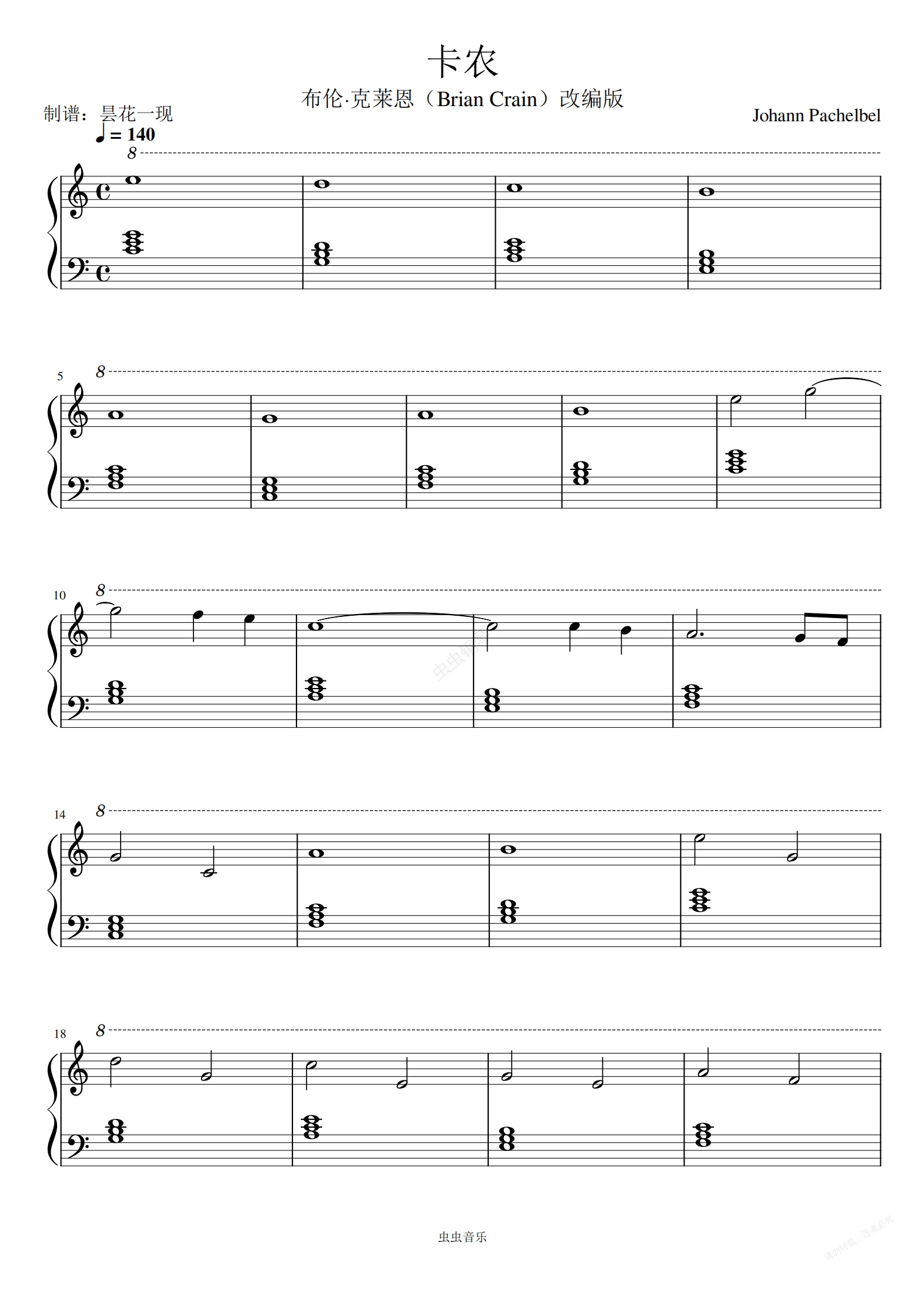 钢琴谱:卡农-Brian Crain改编版