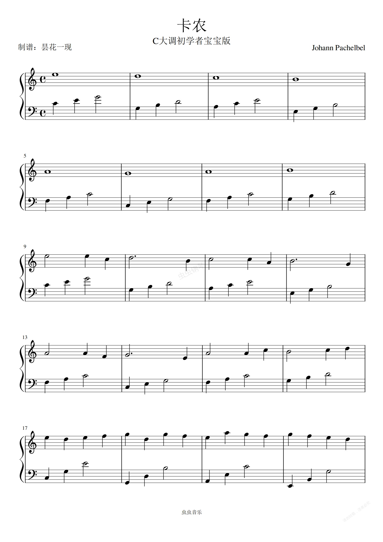 钢琴谱:卡农-初学宝宝版
