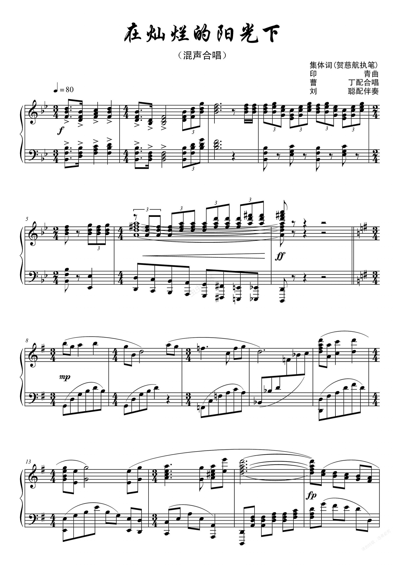 钢琴谱:在灿烂的阳光下 声乐正谱